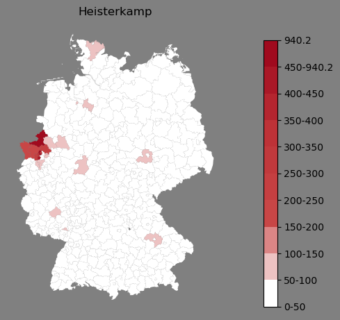 Laut dem Genealogischen Orts-Verzeichnisses und Google-Earth taucht der Name „Heisterkamp“ dreimal als Ort oder Ortsteil auf: