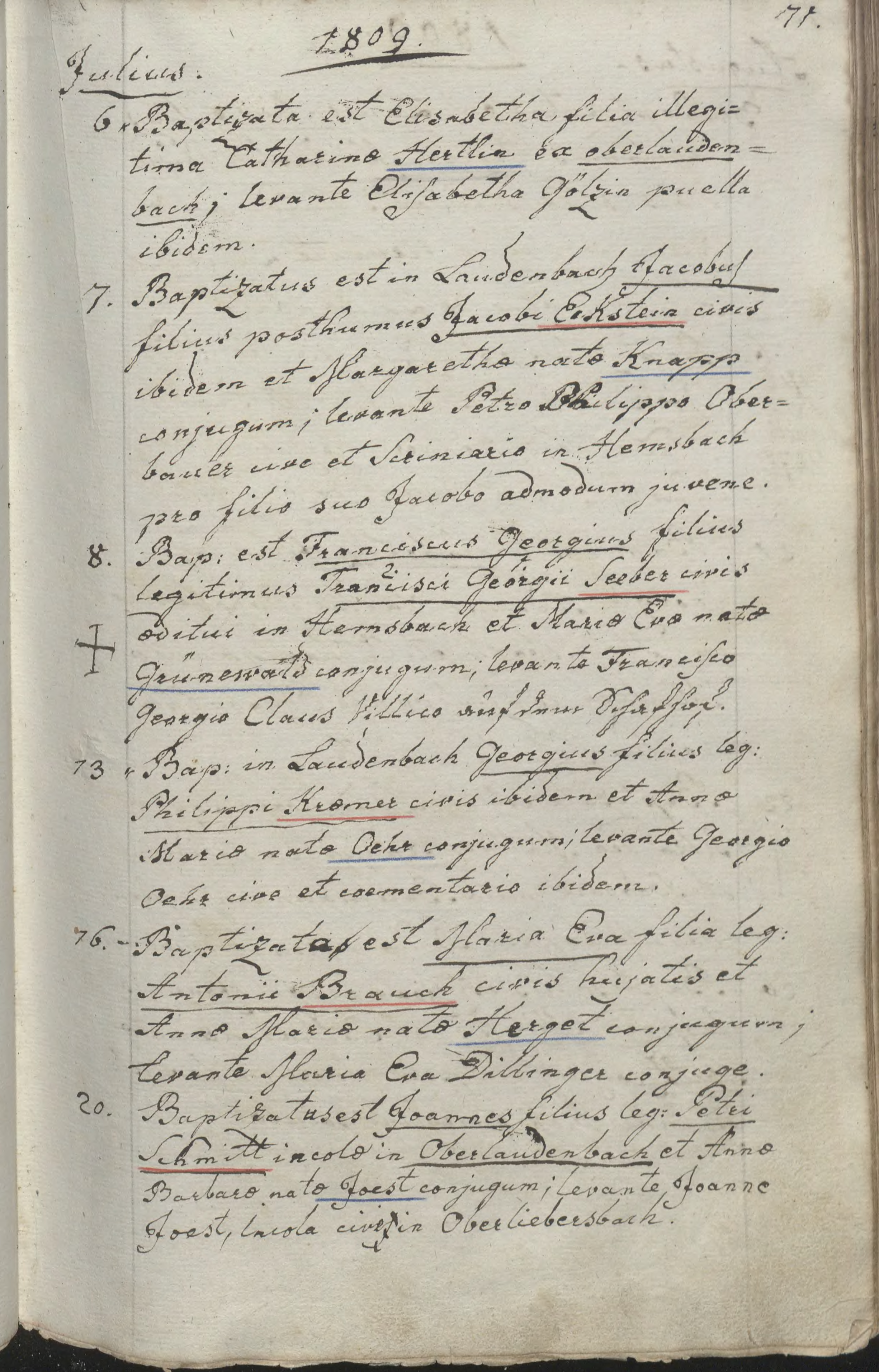 Hemsbach, St. Laurentius (rk)/Kirchenbuch 1803-1831/T-071