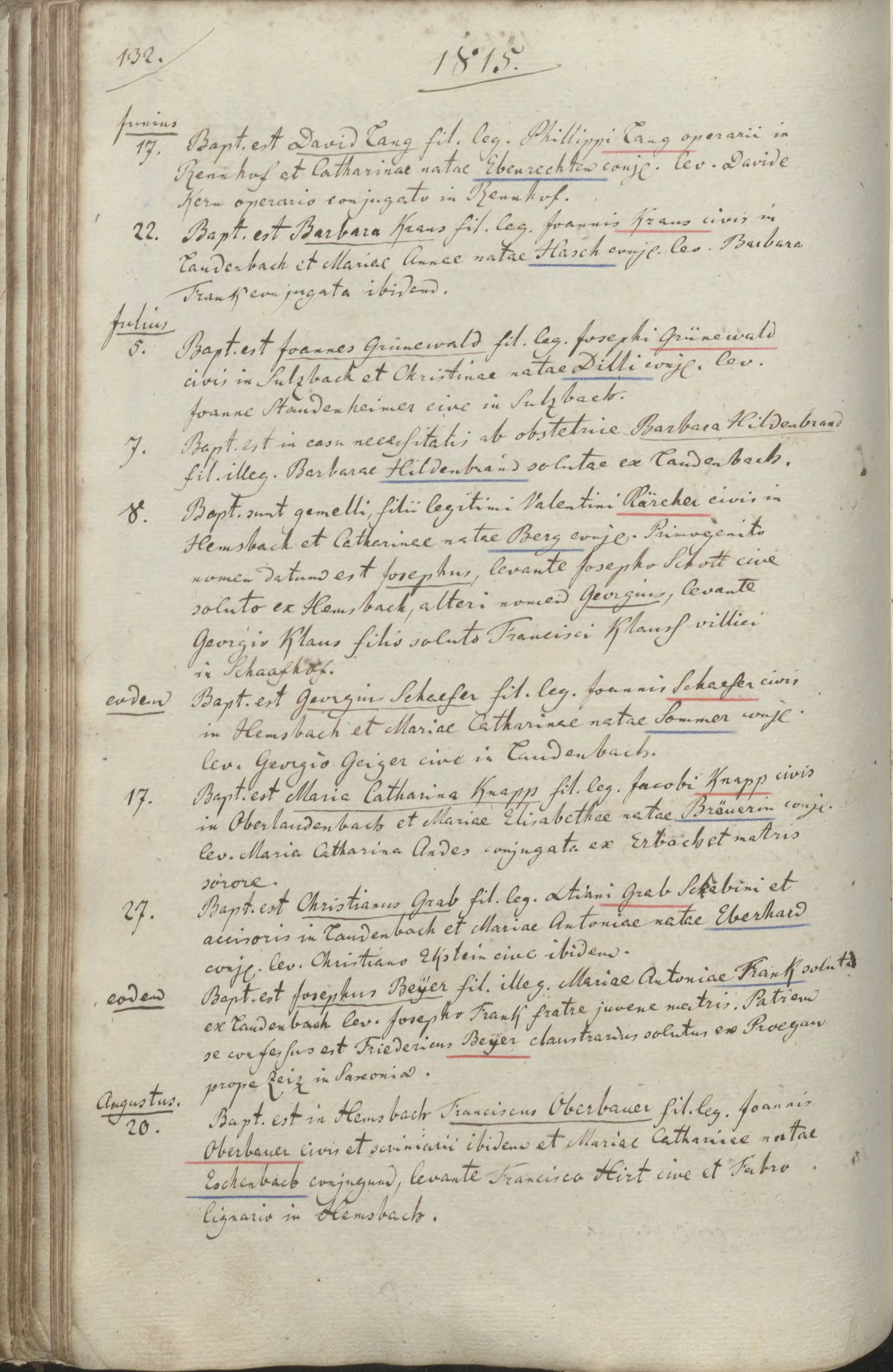 Hemsbach, St. Laurentius (rk)/Kirchenbuch 1803-1831/T-132
