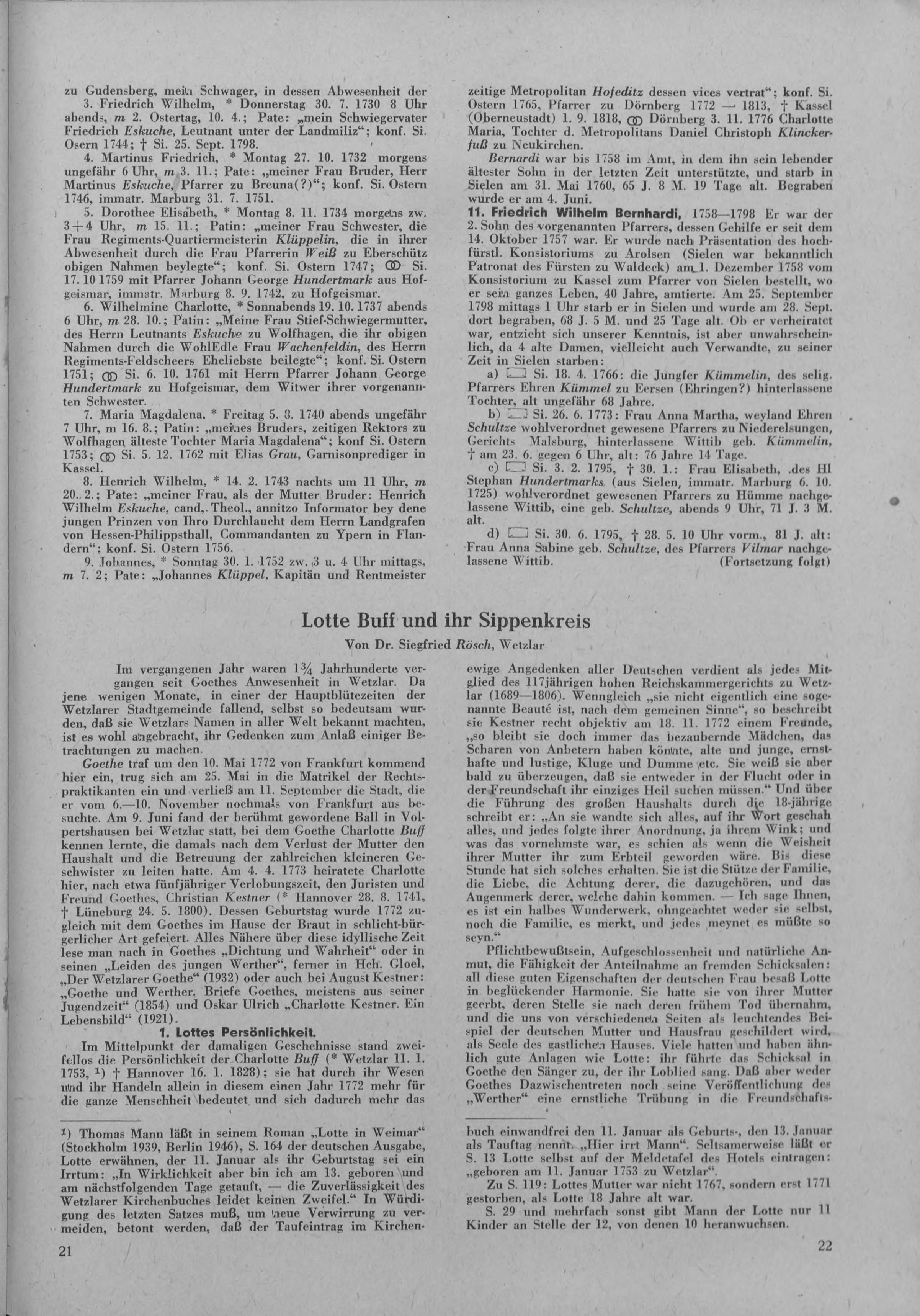Im vergangenen Jahr waren 1 3/4 Jahrhunderte vergangen seit Goethes Anwesenheit in Wetzlar. Da jene wenigen Monate, in einer der Hauptblütezeiten der Wetzlarer Stadtgemeinde fallend, selbst so bedeutsam wurden, daß sie Wetzlars Namen in aller Welt bekannt machten, ist es wohl angebracht, ihr Gedenken zum Anlaß einiger Betrachtungen zu machen.