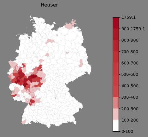 Absolute Verteilung des Namens Heuser (1890)Direkt zur Karte Absolute Verteilung des Namens "Heuser" um 1890 im damaligen Deutschen Reich Sie können die Karte innerhalb des Fensters zoomen und verschieben. |