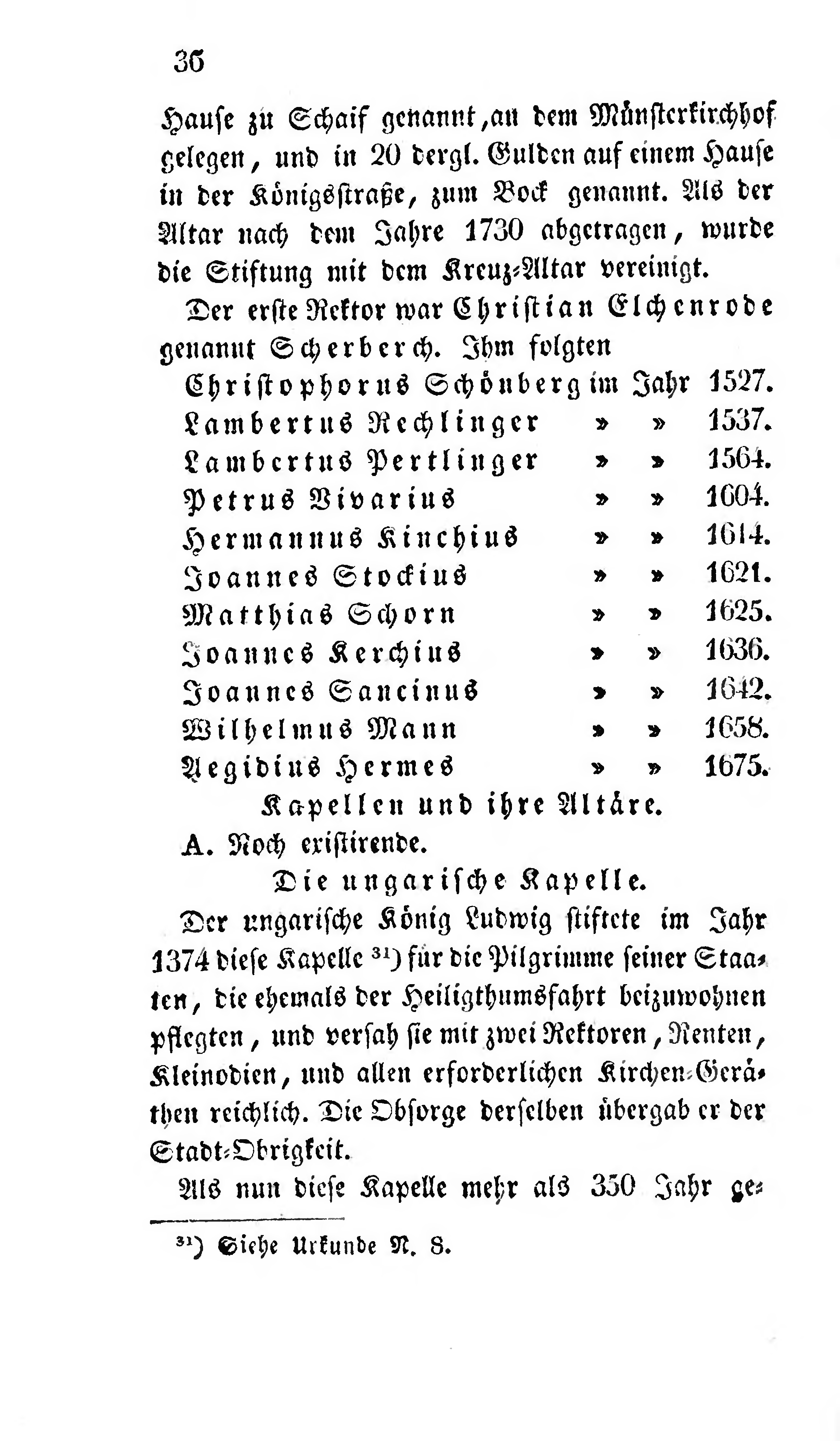 Hause zu Schaif genannt, an dem Münsterkirchhof gelegen, und in 20 dergl. Gulden auf einem Hause in der Königsstraße, zum Bock genannt. Als der Altar nach dem Jahre 1730 abgetragen, wurde die Stiftung mit dem Kreuz-Altar vereinigt.