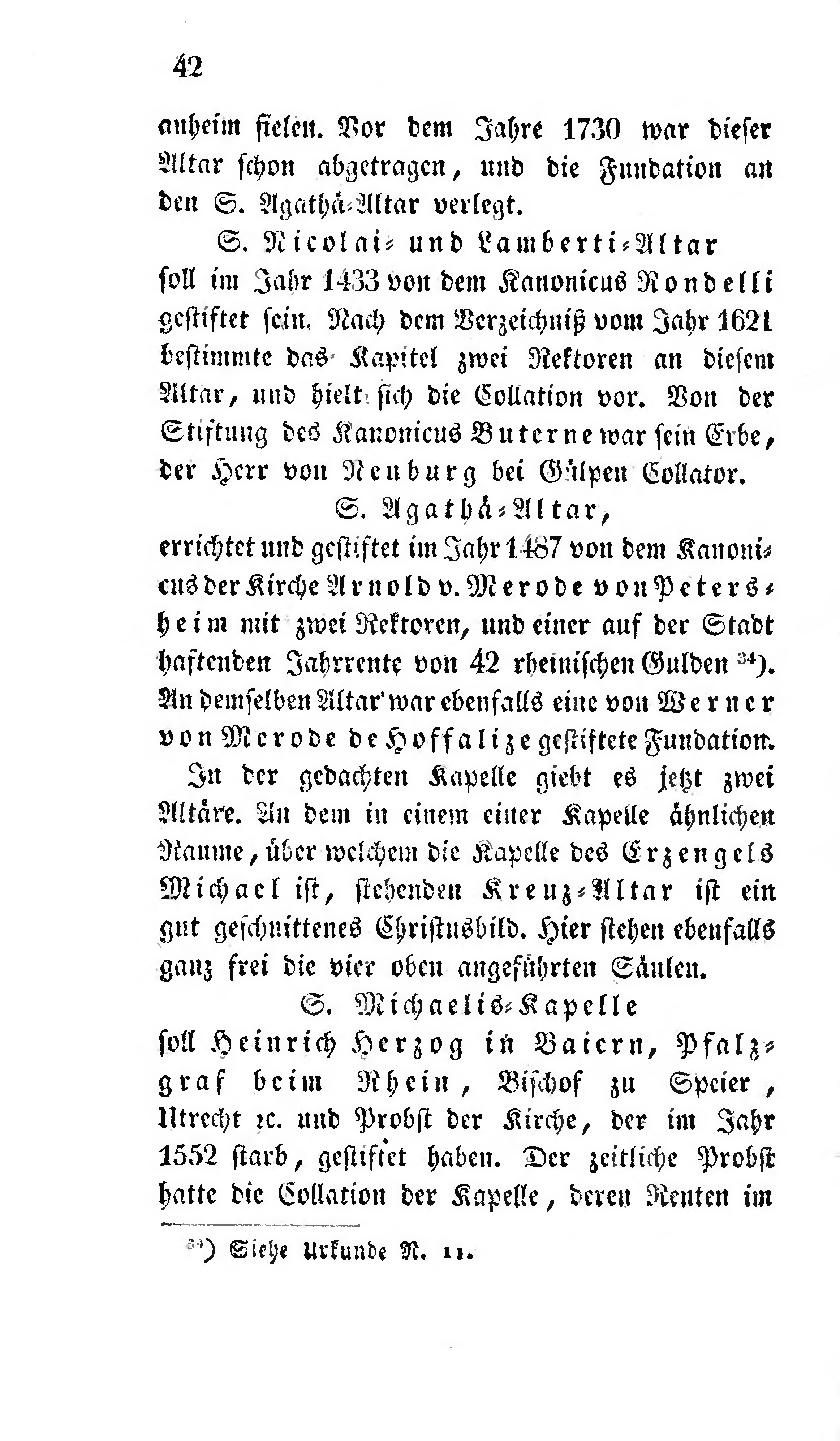 anheim fielen. Vor dem Jahre 1730 war dieser Altar schon abgetragen, und die Fundation an den S. Agatha-Altar verlegt.