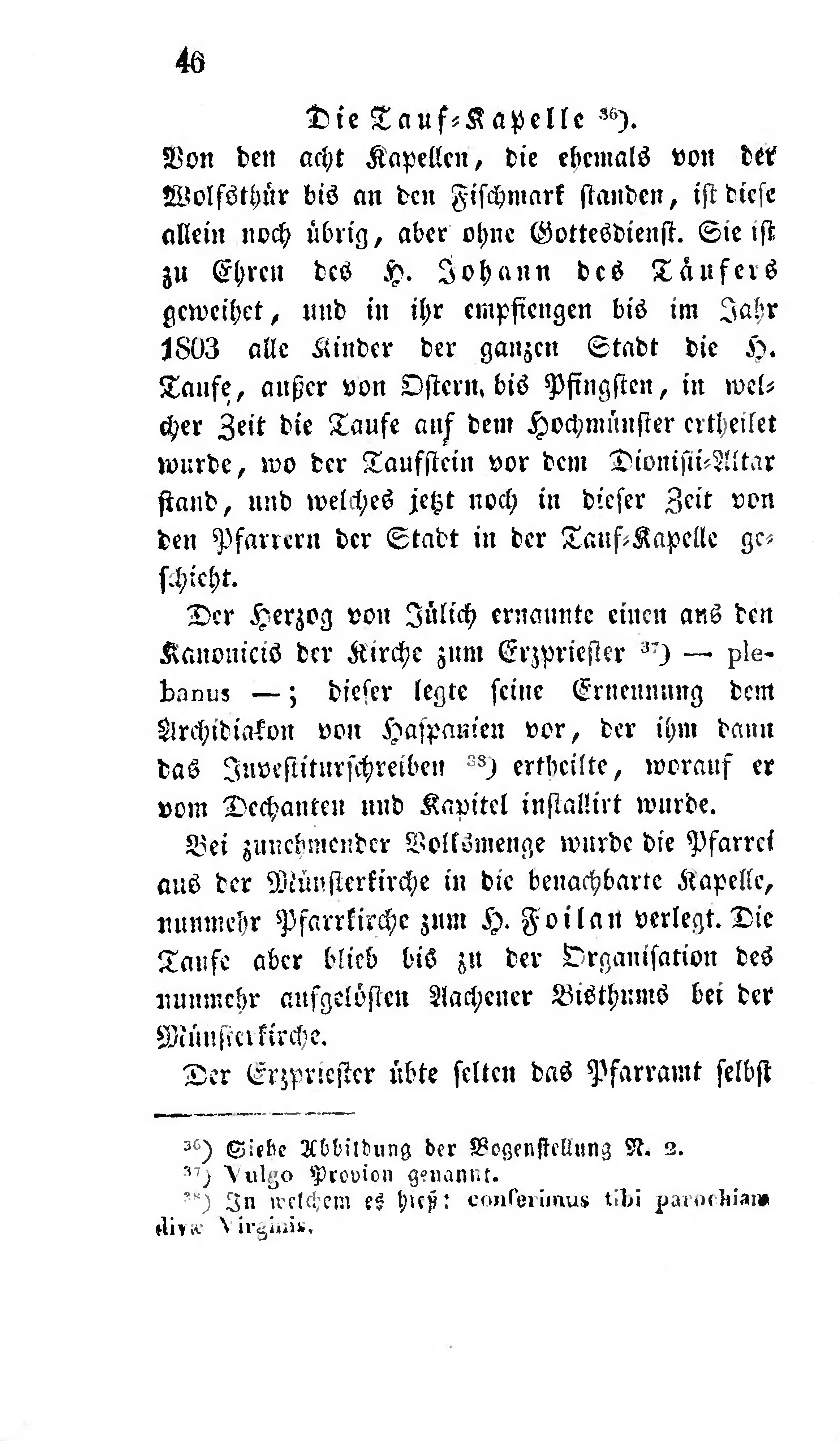Bei zunehmender Volksmenge wurde die Pfarrei aus der Münsterkirche in die benachbarte Kapelle, nunmehr Pfarrkirche zum H. Foilan verlegt. Die Taufe aber blieb bis zu der Organisation des nunmehr aufgelösten Aachener Bisthums bei der Münsterkirche.