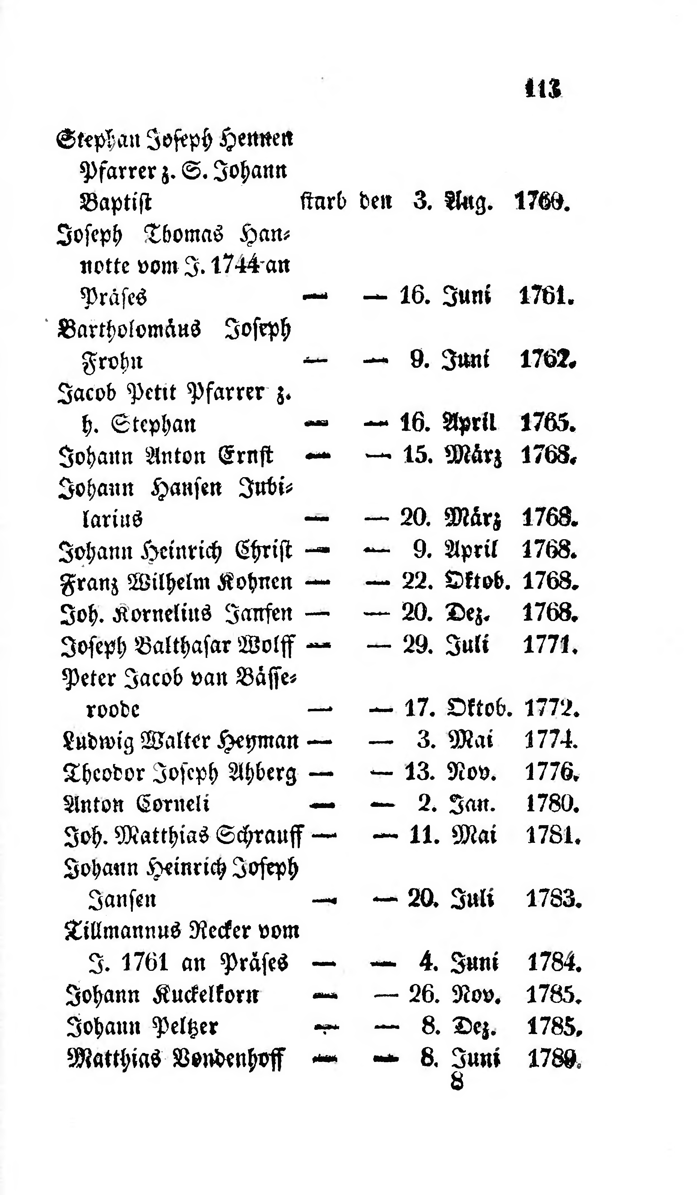 | Johann Kuckelkorn | — | — | 26. Nov. | 1785. |