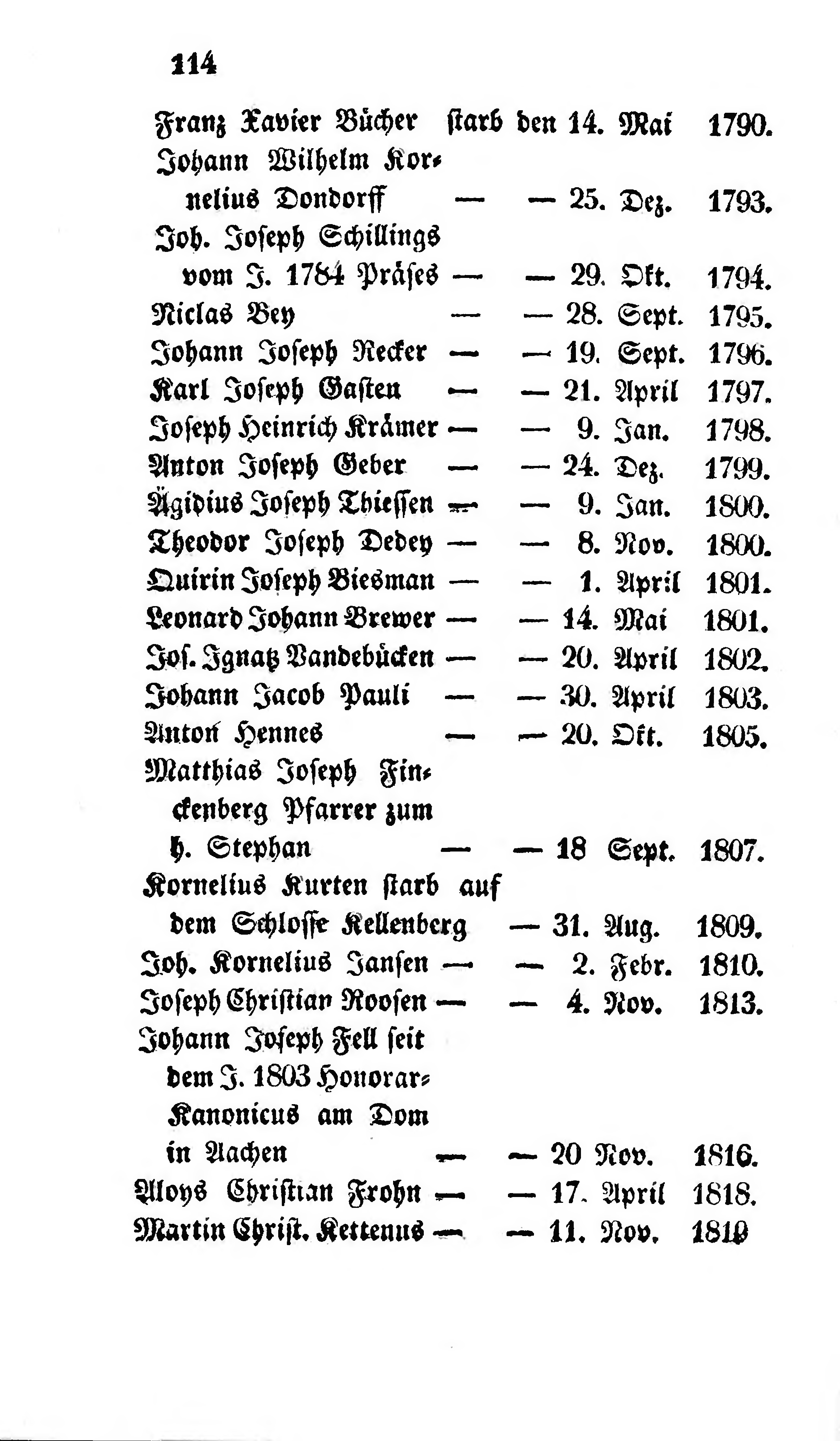 | Kornelius Kurten starb auf dem Schlosse Kellenberg | — | 31. Aug. | 1809. | |
