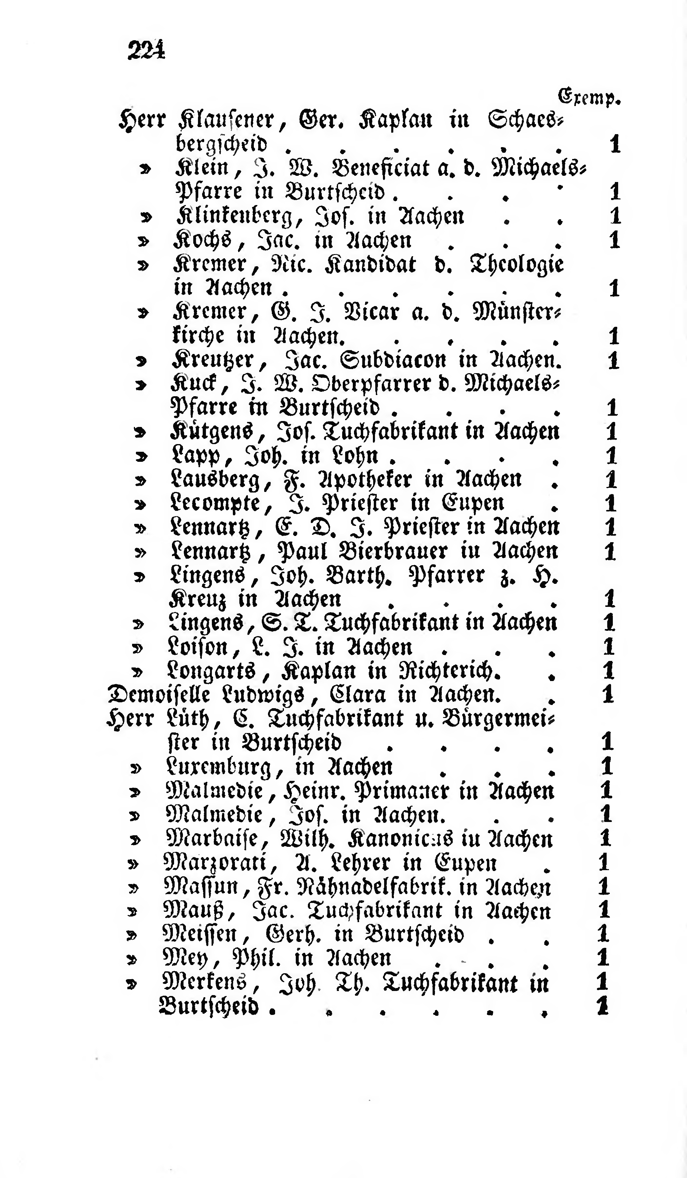 | Herr | Lüth, C. Tuchfabrikant u. Bürgermeister in Burtscheid | 1 |
