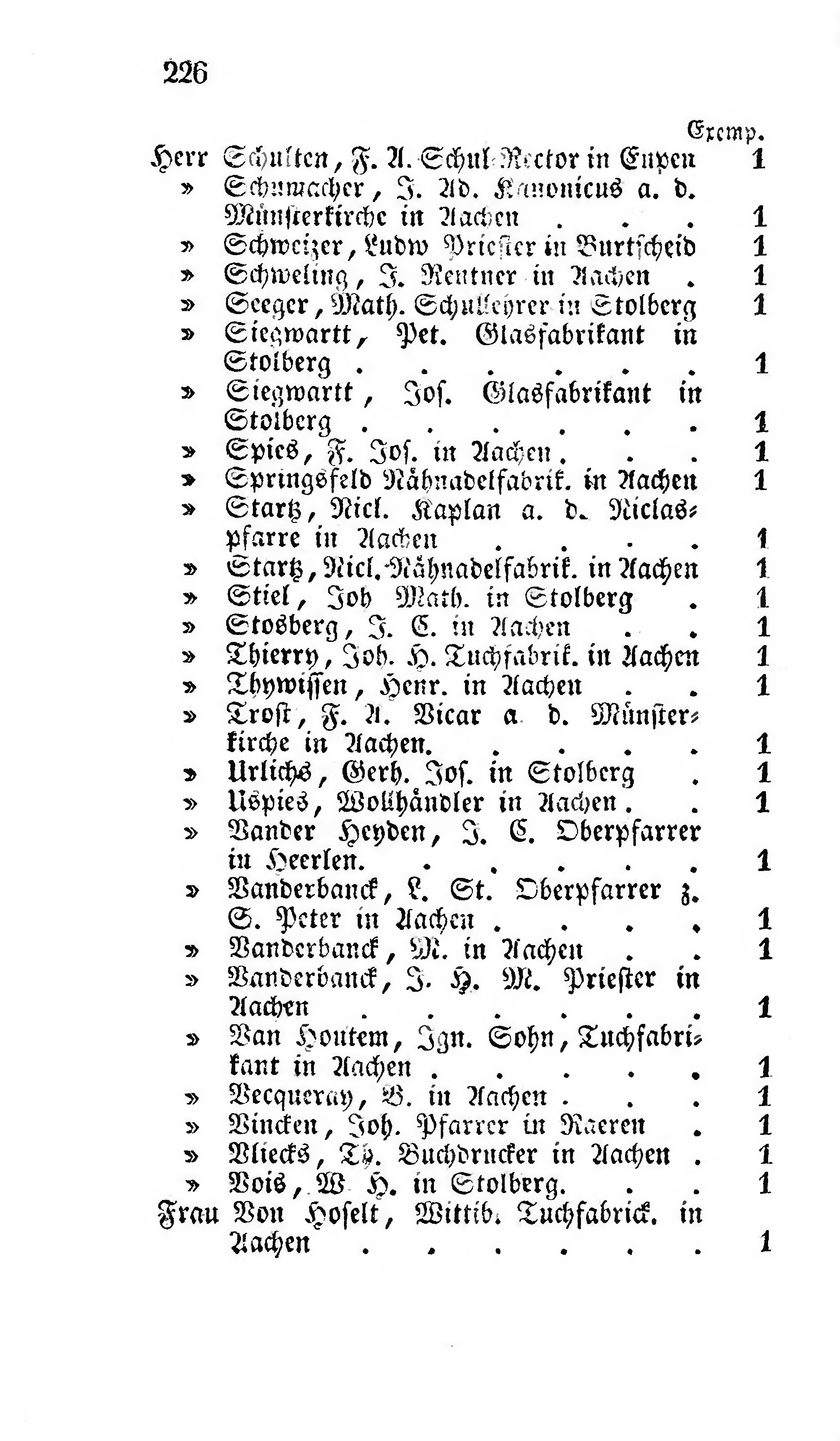 | » | Vliecks, Th. Buchdrucker in Aachen | 1 |
