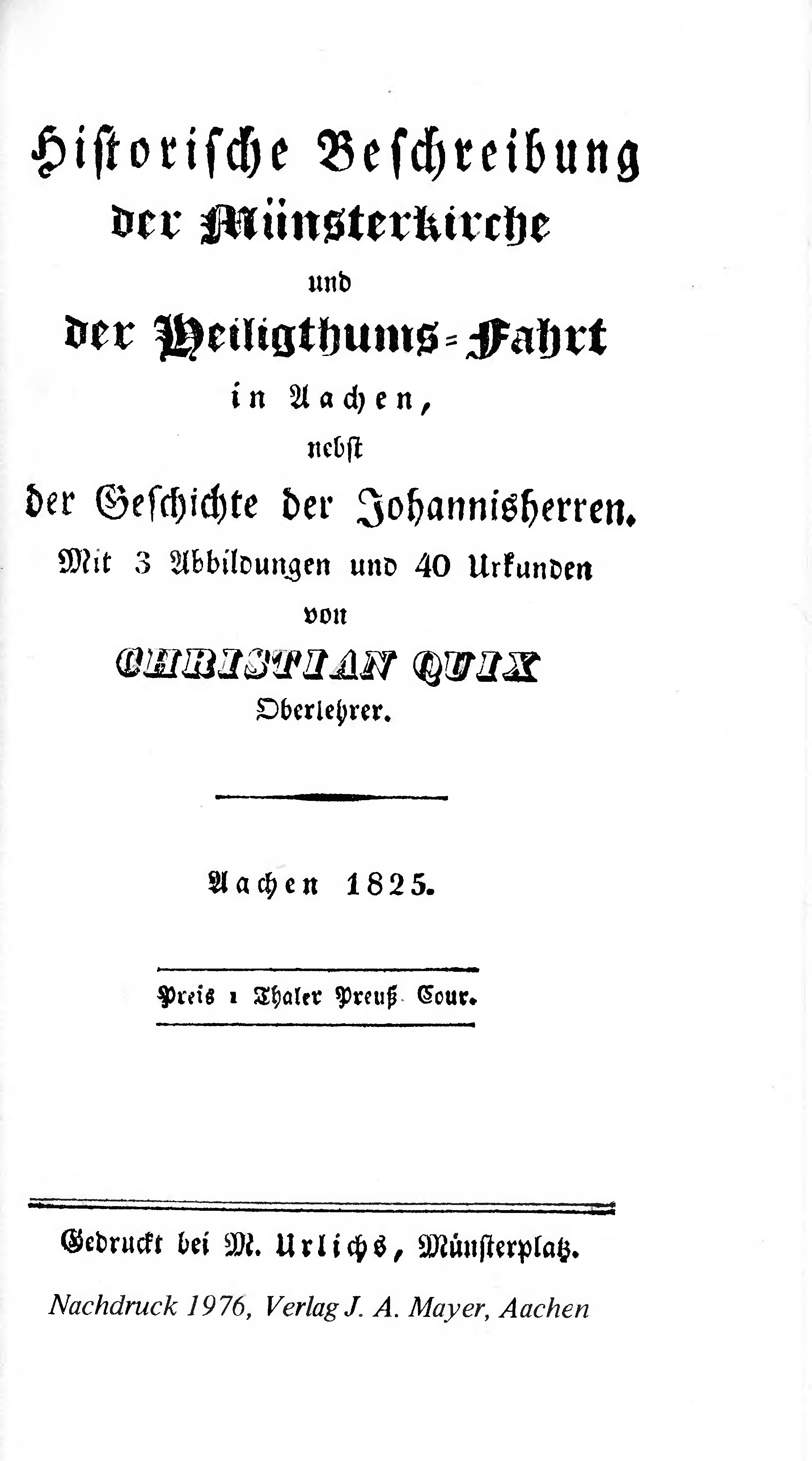 Nachdruck 1976, Verlag J. A. Mayer, Aachen