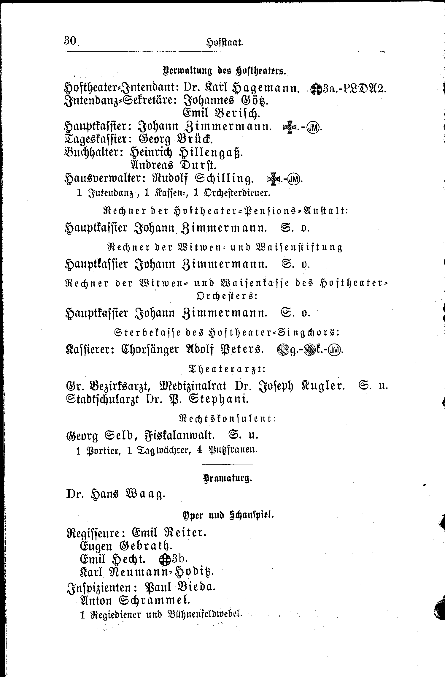 - Hoftheater-Intendant: Dr. Karl Hagemann. Zähringer Löwenorden Ritter I.Kl. - K. Preußische Landwehrdienstausszeichnung II. Kl.