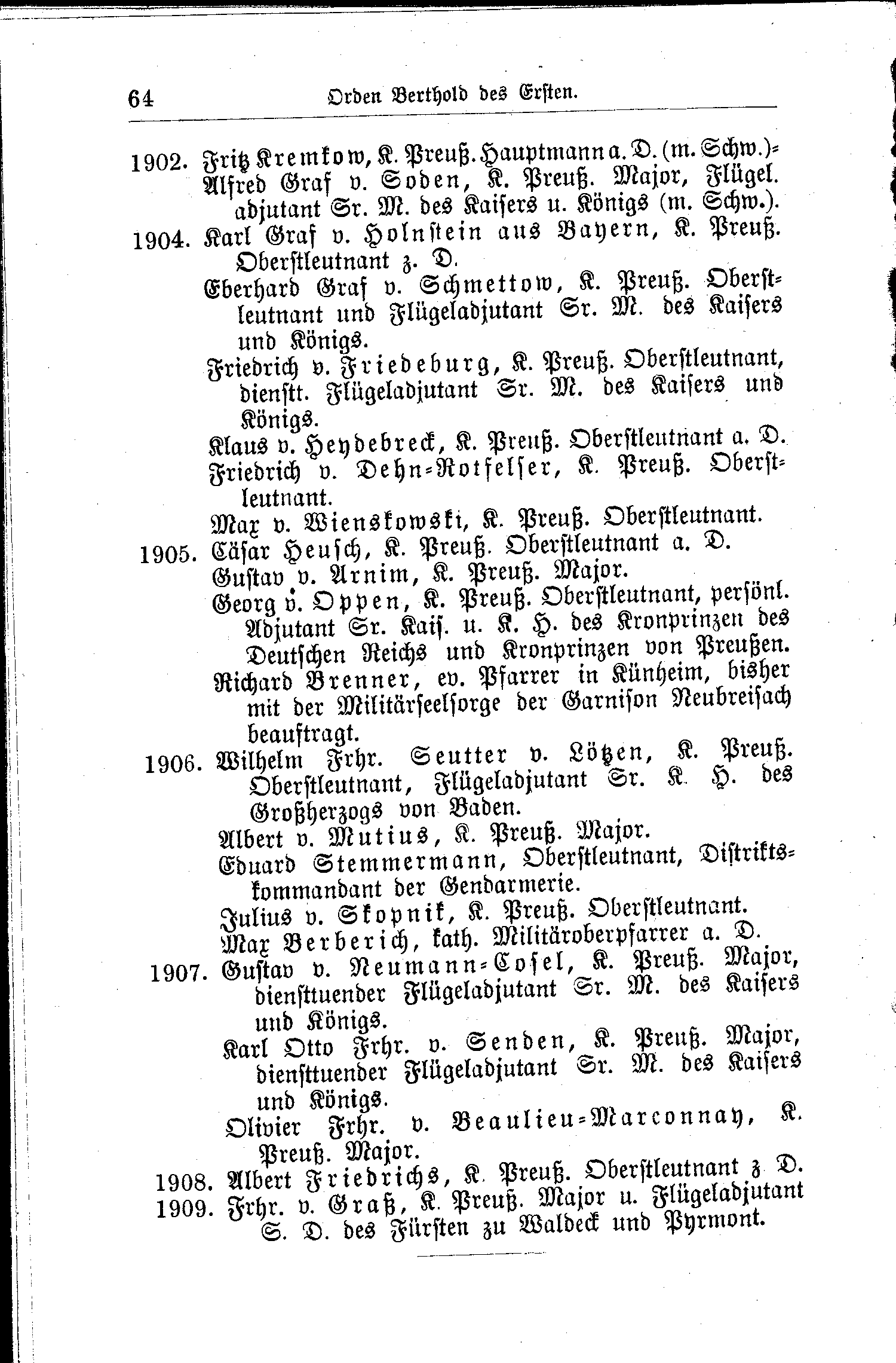 - Wilhelm Frhr. Seutter v. Lötzen, K. Preuß. Oberstleutnant, Flügeladjudant Sr. K. H. des Großherzogs von Baden.