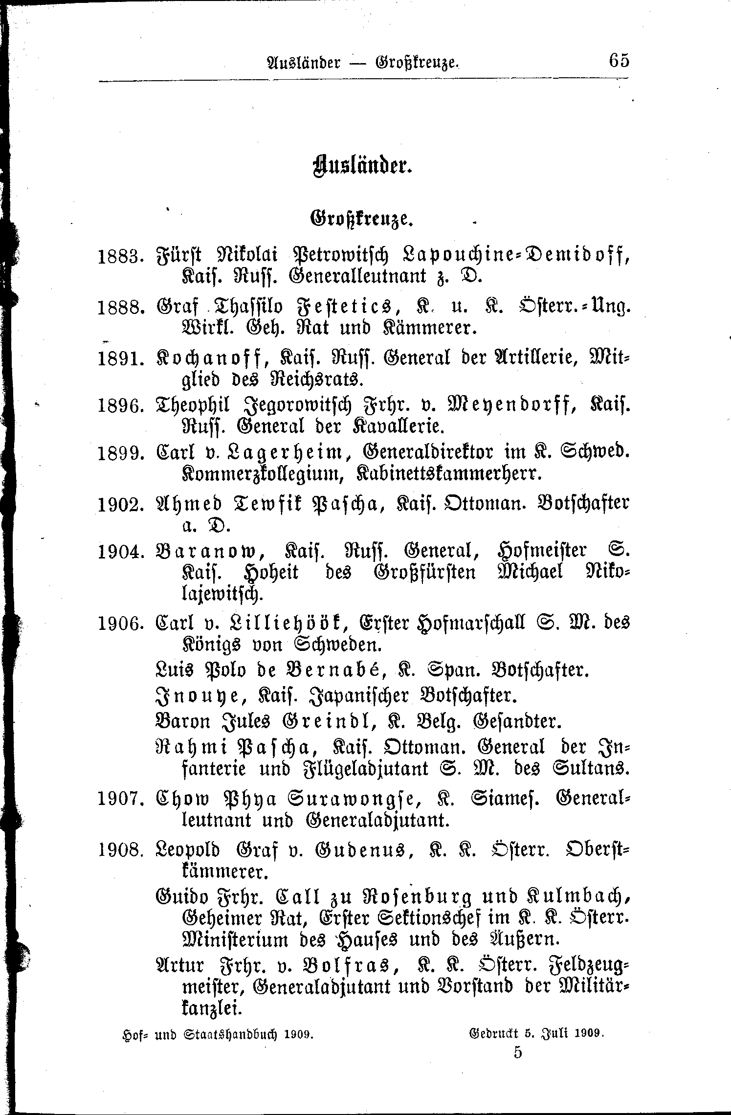 - Leopold Graf v. Gudenus, K. K. Österr. Oberstkämmerer.