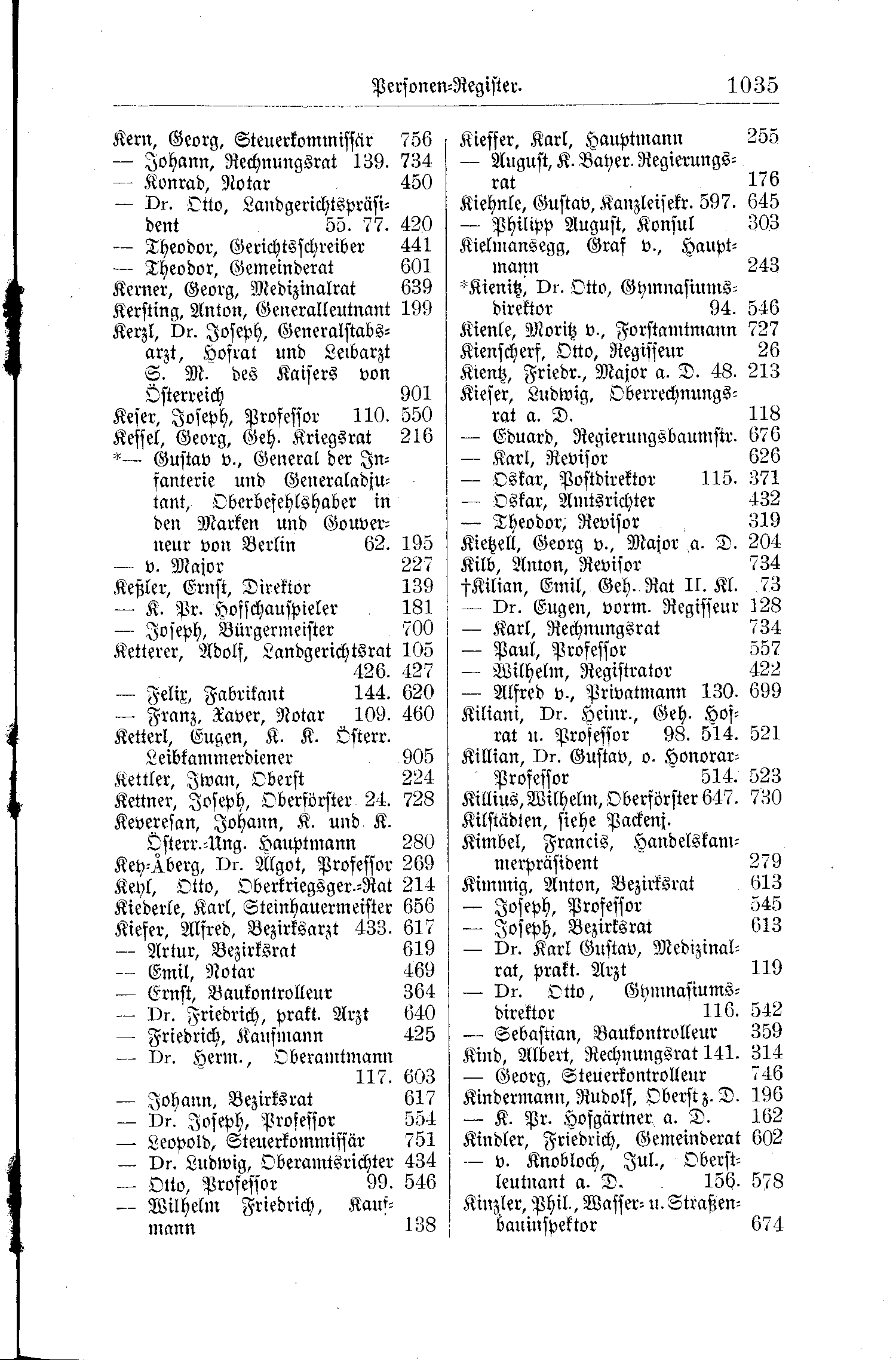 | Kern, Georg, Steuerkommissär | 756 | Kieffer, Karl, Hauptmann | 255 |