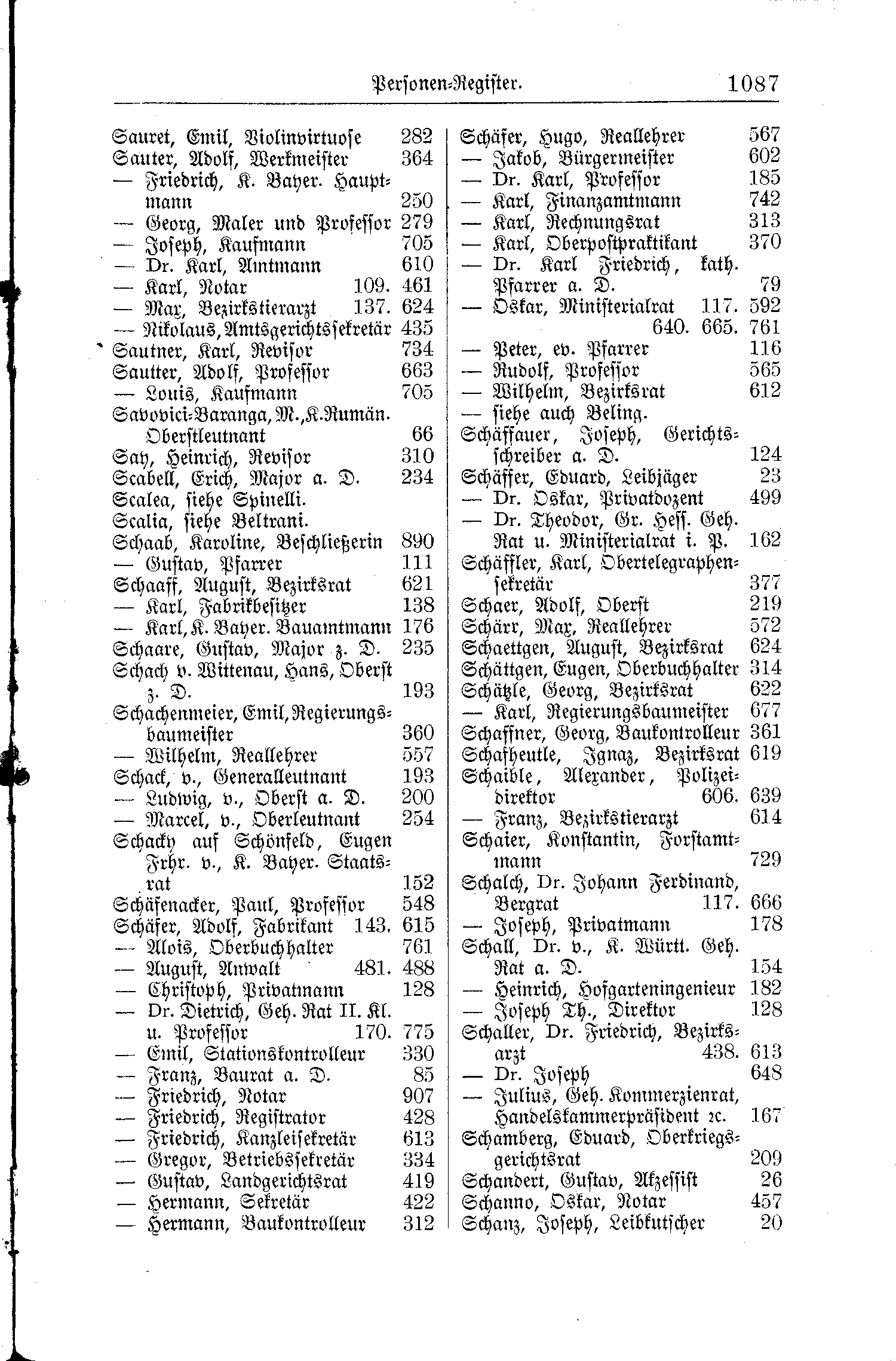 | Schachenmeier, Emil, Regierungsbaumeister | 360 | Schafheutle, Ignatz, Bezirksrat | 619 |