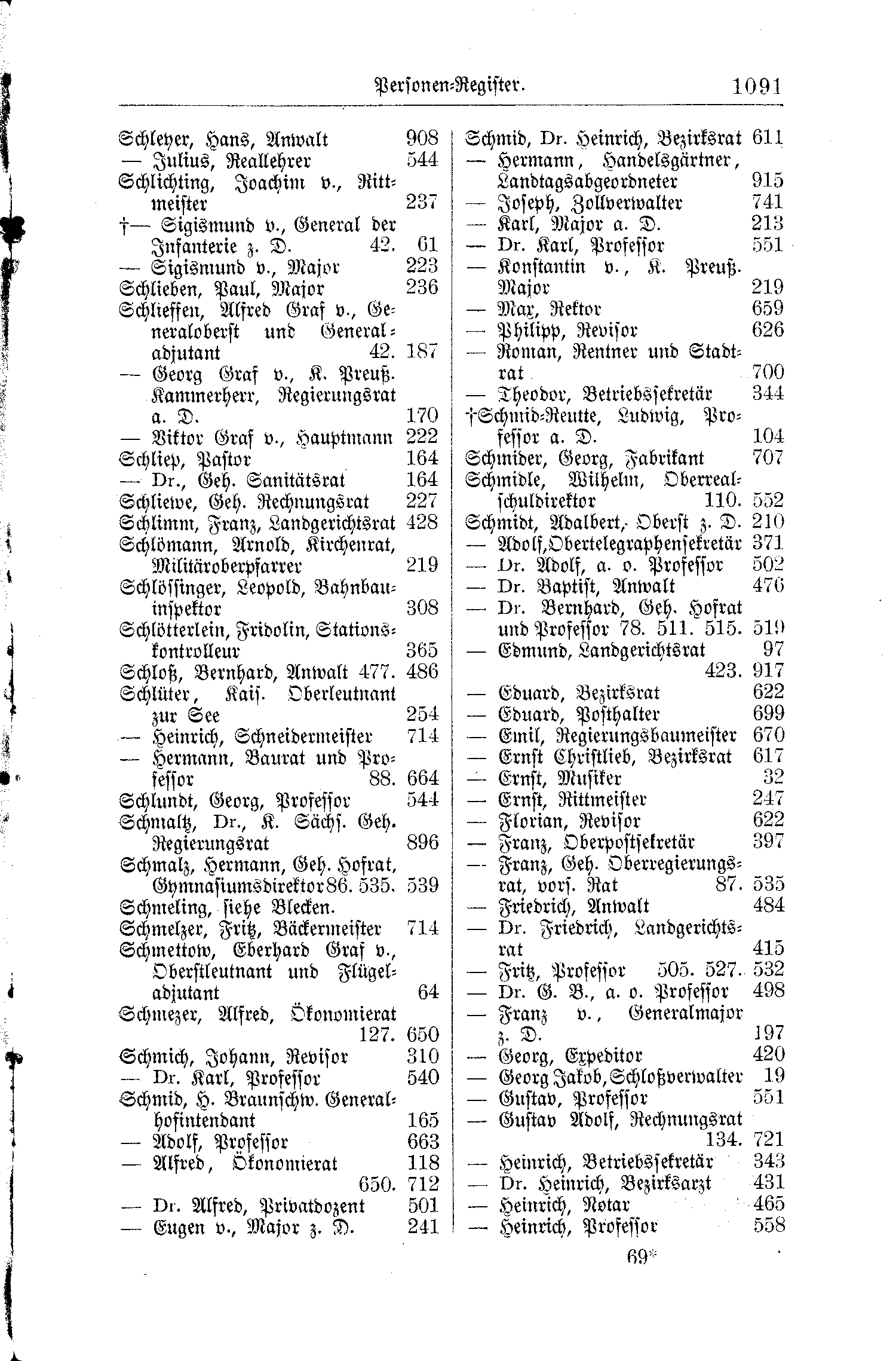 | Schlimm, Franz, Landgerichtsrat | 428 | Schmidle, Wilhelm, Oberrealschuldirektor | 110. 552 |