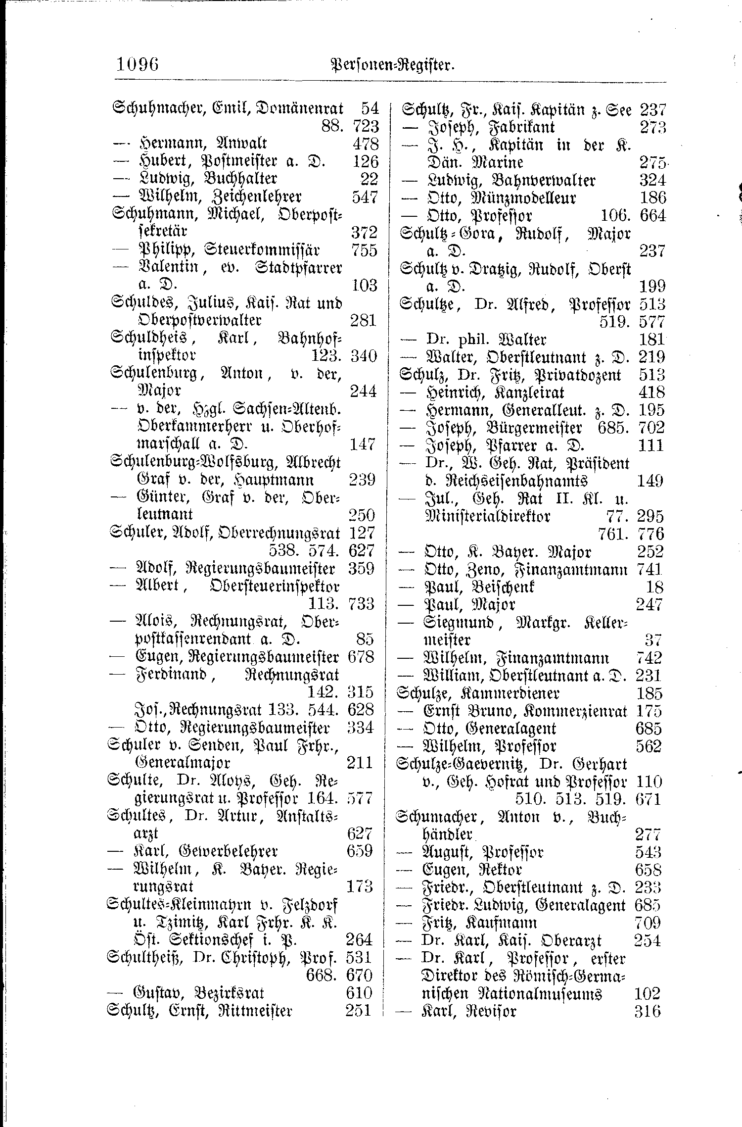 | Schuhmann, Michael, Oberpostsekretär | 372 | --Otto, Professor | 106. 664 |