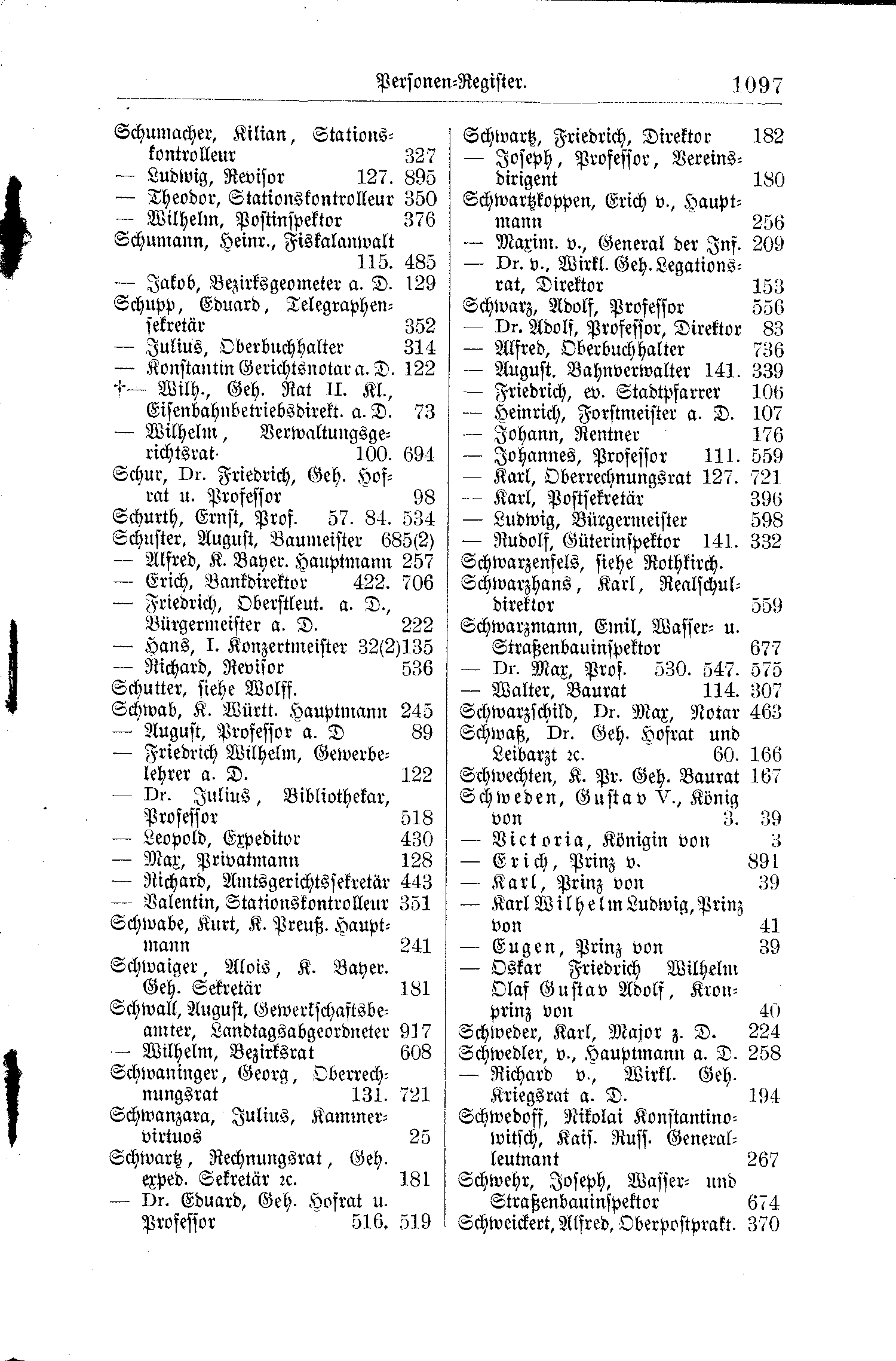 | Schwaiger, Alois, K. Bayer. Geh. Sekretär | 181 | -- Karl Wilhelm Ludwig, Prinz von | 41 |