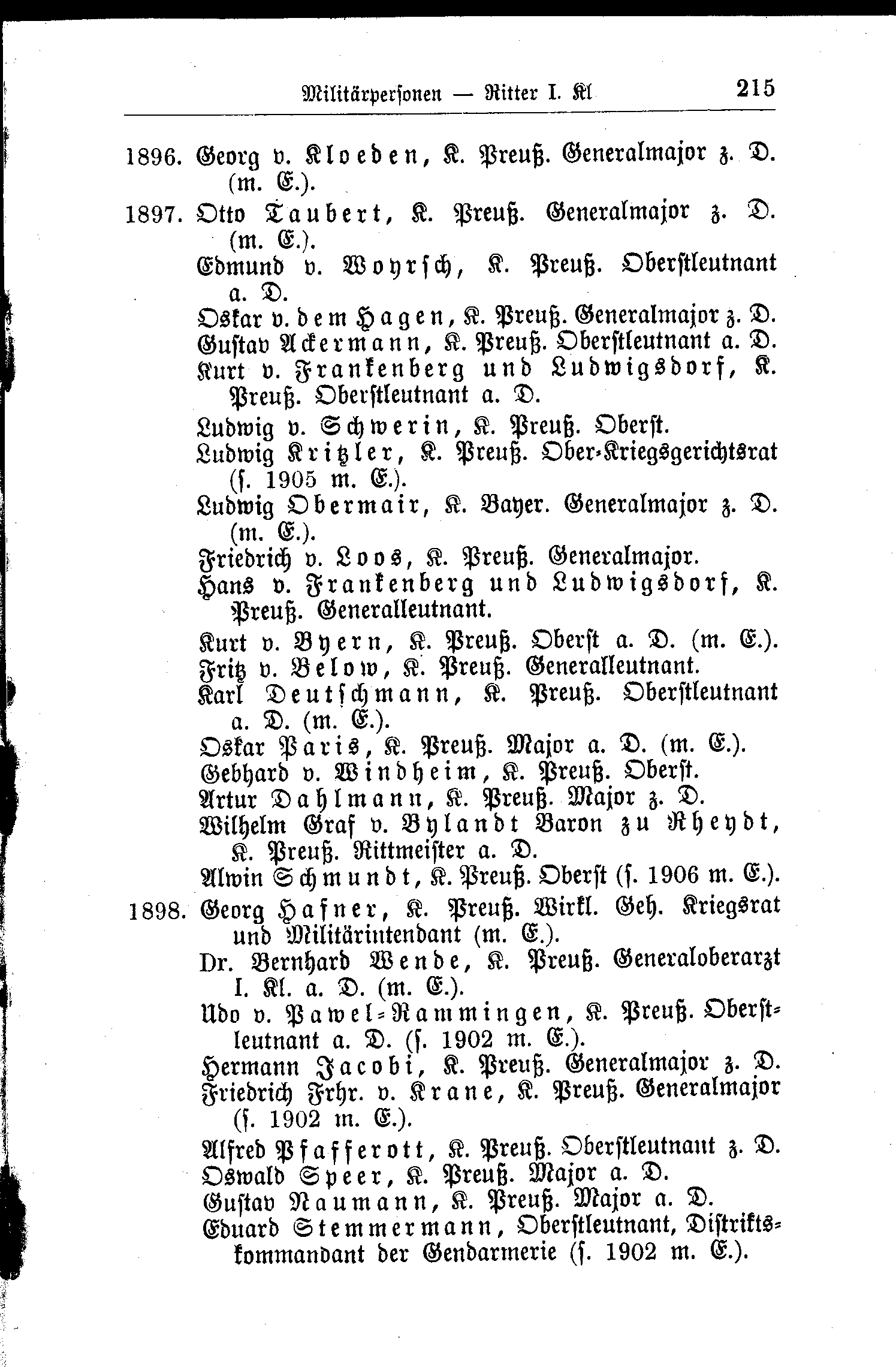 - Friedrich Frhr. v. Krane, K. Preuß. Generalmajor (seit 1902 mit Eichenlaub).