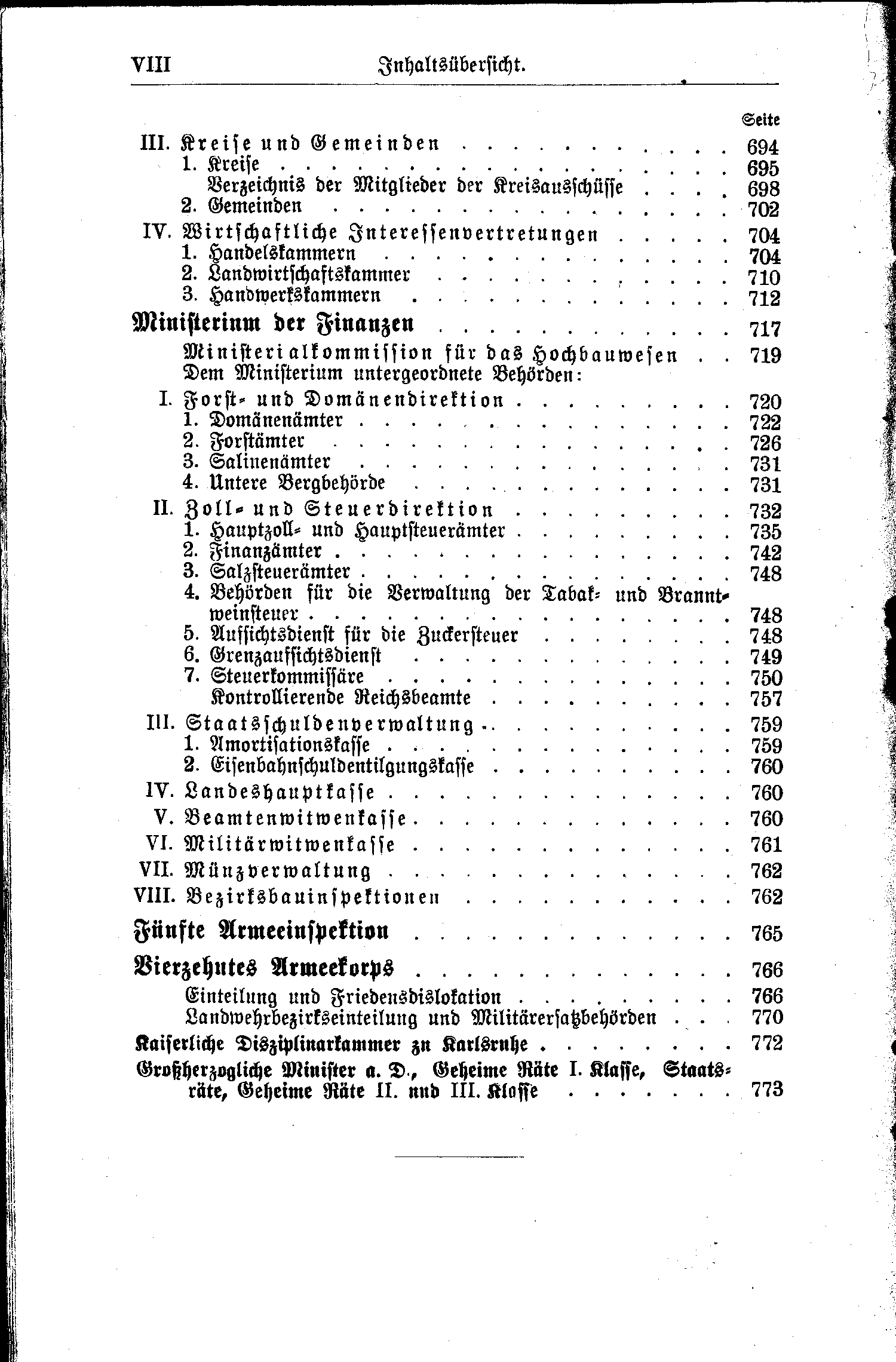 Hof- und Staatshandbuch des Großherzogtums Baden (1910)/VIII