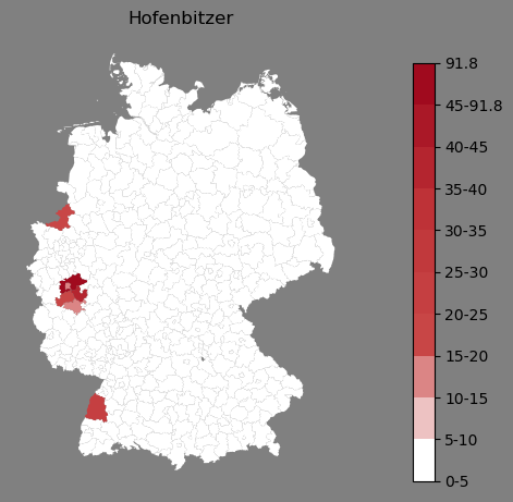 Absolute Verteilung des Namens Hofenbitzer (1890)Direkt zur Karte Absolute Verteilung des Namens "Hofenbitzer" um 1890 im damaligen Deutschen Reich Sie können die Karte innerhalb des Fensters zoomen und verschieben. |