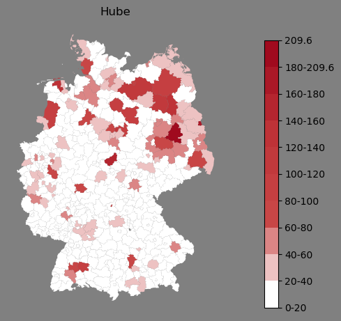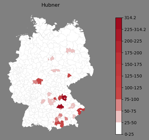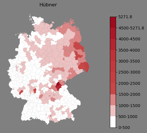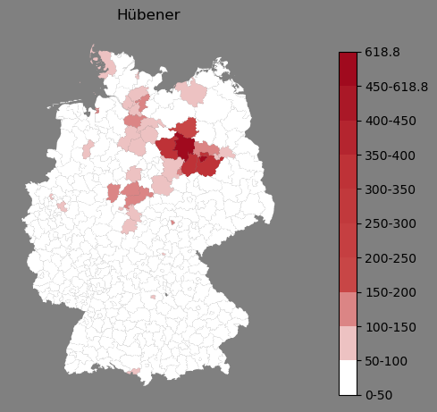 | Relativ "Hube" | Absolut "Hube" | Relativ "Hübner" | Absolut "Hübner" | Relativ "Hübener" | Absolut "Hübener" |
