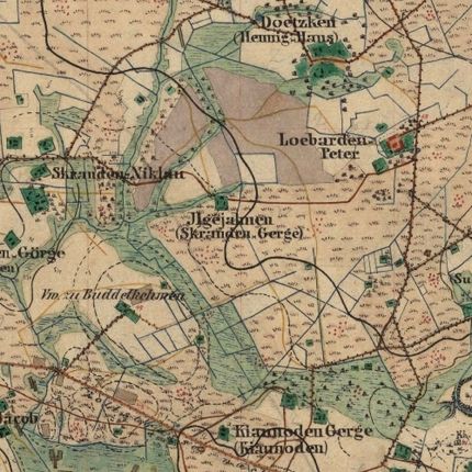 Ilgejahnen, Skranden Gerge, 1687 Gergen Skrandell, 1736 Ilgjahn Sckrandel Gerge, auch Ilgejahn Skrandel Gerge und Ilge Jahn Skrandel Gerge (1785) Ilgegahnen (1888), Kreis Memel, Ostpreußen