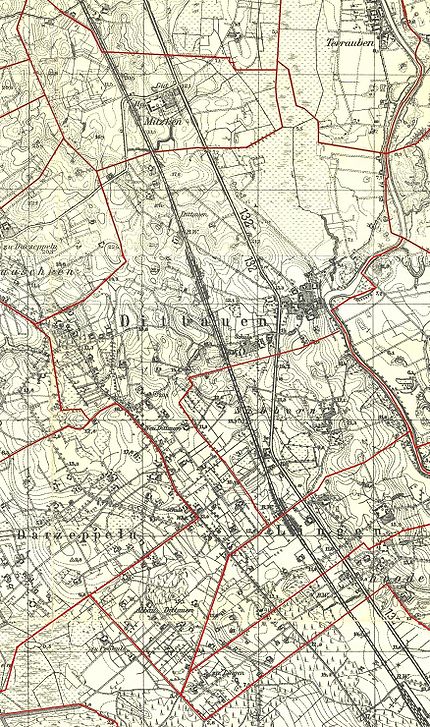 1939 ist Dittauen eine Gemeinde mit dem Gut Mitzken und den Dörfern Dittauen, Abbau Dittauen, Neu Dittauen, Spengen und Terrauben.[8]