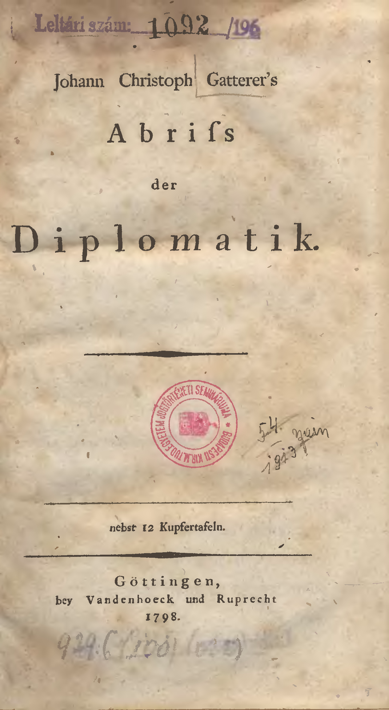 - Johann Christoph Gatterers Abriß der Diplomatik (1798)