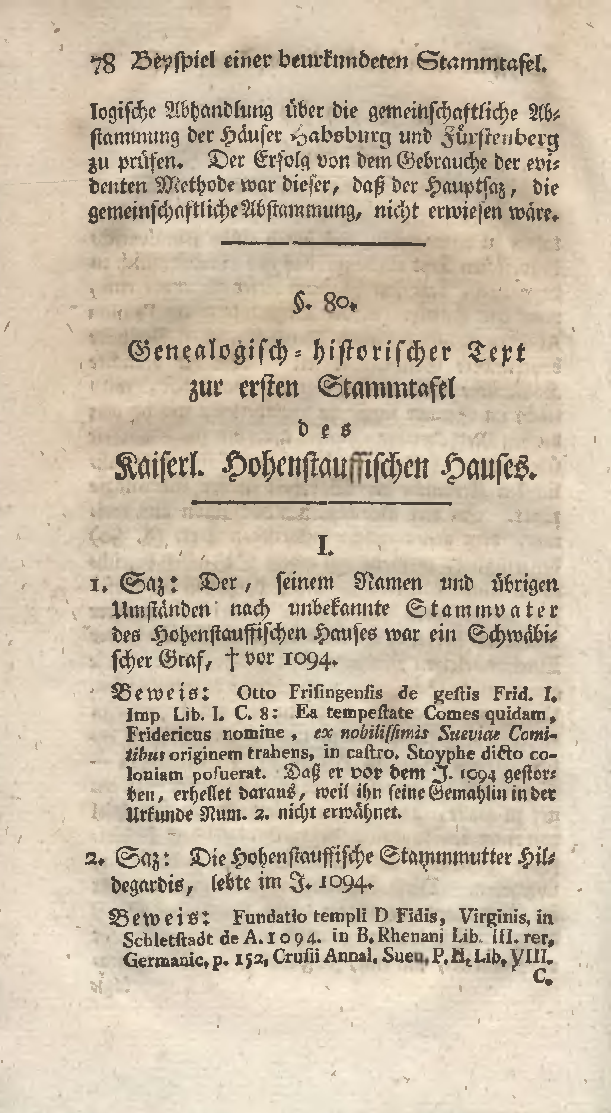 Abhandlung über die gemeinschaftliche Abstammung der Häuser Habsburg und Fürstenberg zu prüfen. Der Erfolg von dem Gebrauche der evidenten Methode war dieser, daß der Hauptsaz, die gemeinschaftliche Abstammung, nicht erwiesen wäre.