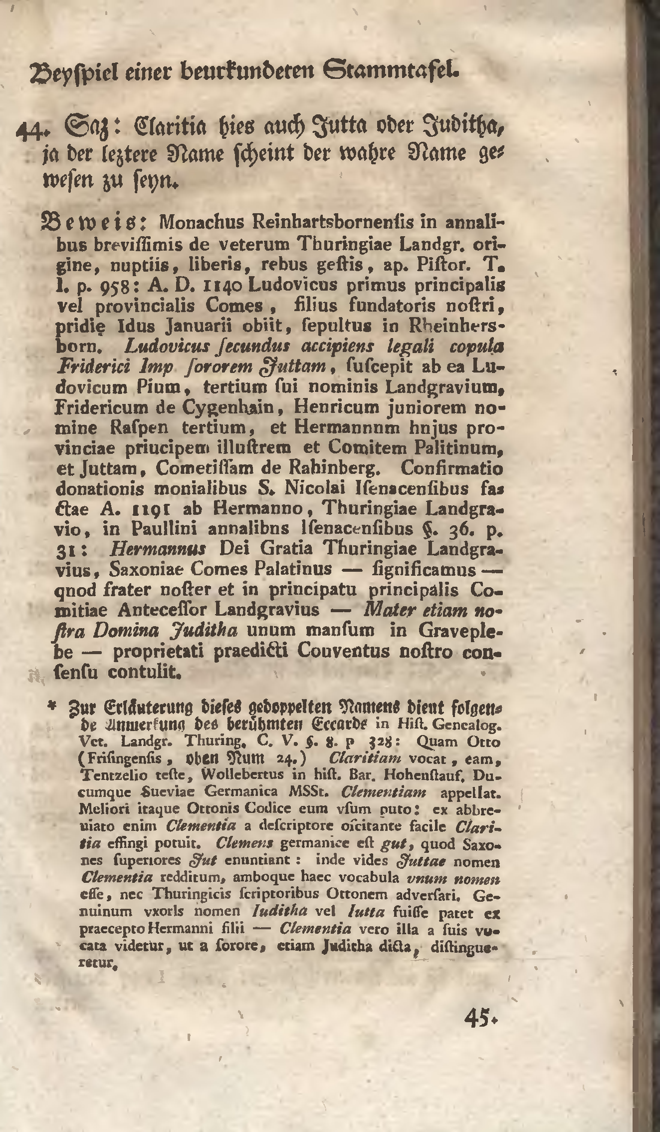 44. Saz: Claritia hies auch Jutta oder Juditha, ja der leztere Name scheint der wahre Name gewesen zu seyn.