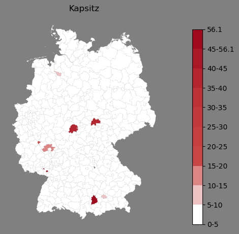 Absolute Verteilung des Namens Kapsitz (1890)Direkt zur Karte Absolute Verteilung des Namens "Kapsitz" um 1890 im damaligen Deutschen Reich Sie können die Karte innerhalb des Fensters zoomen und verschieben. |