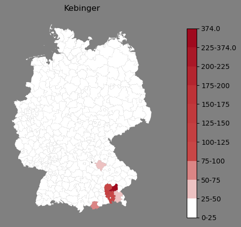 Absolute Verteilung des Namens Kebinger (1890)Direkt zur Karte Absolute Verteilung des Namens "Kebinger" um 1890 im damaligen Deutschen Reich Sie können die Karte innerhalb des Fensters zoomen und verschieben. |
