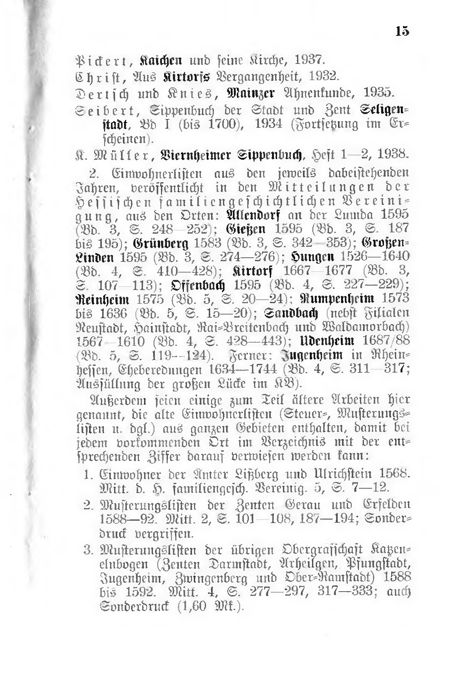 - Musterungslisten der übrigen Obergrafschaft Katzenelnbogen (Zenten Darmstadt, Arheilgen, Pfungstadt, Jugenheim, Zwingenberg und Ober-Ramstadt) 1583 bis 1592. Mitt. 4, S. 277–297, 317–333; auch Sonderdruck (1,60 Mk.).