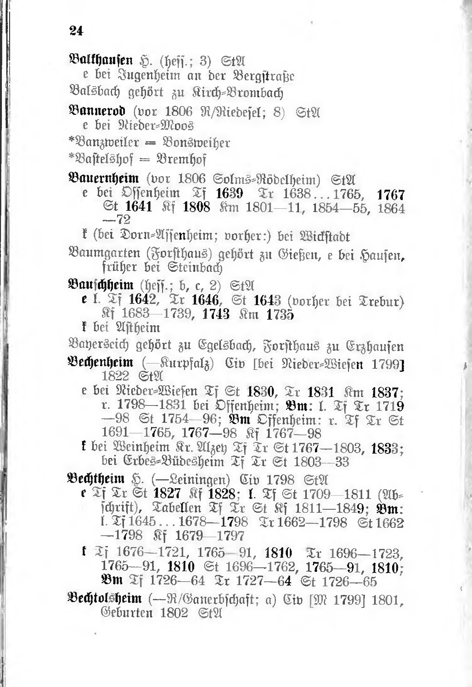 - k bei Weinheim Kr. Alzey Tf Tr St 1767–1803, 1833; bei Erbes-Büdesheim Tf Tr St 1803–33