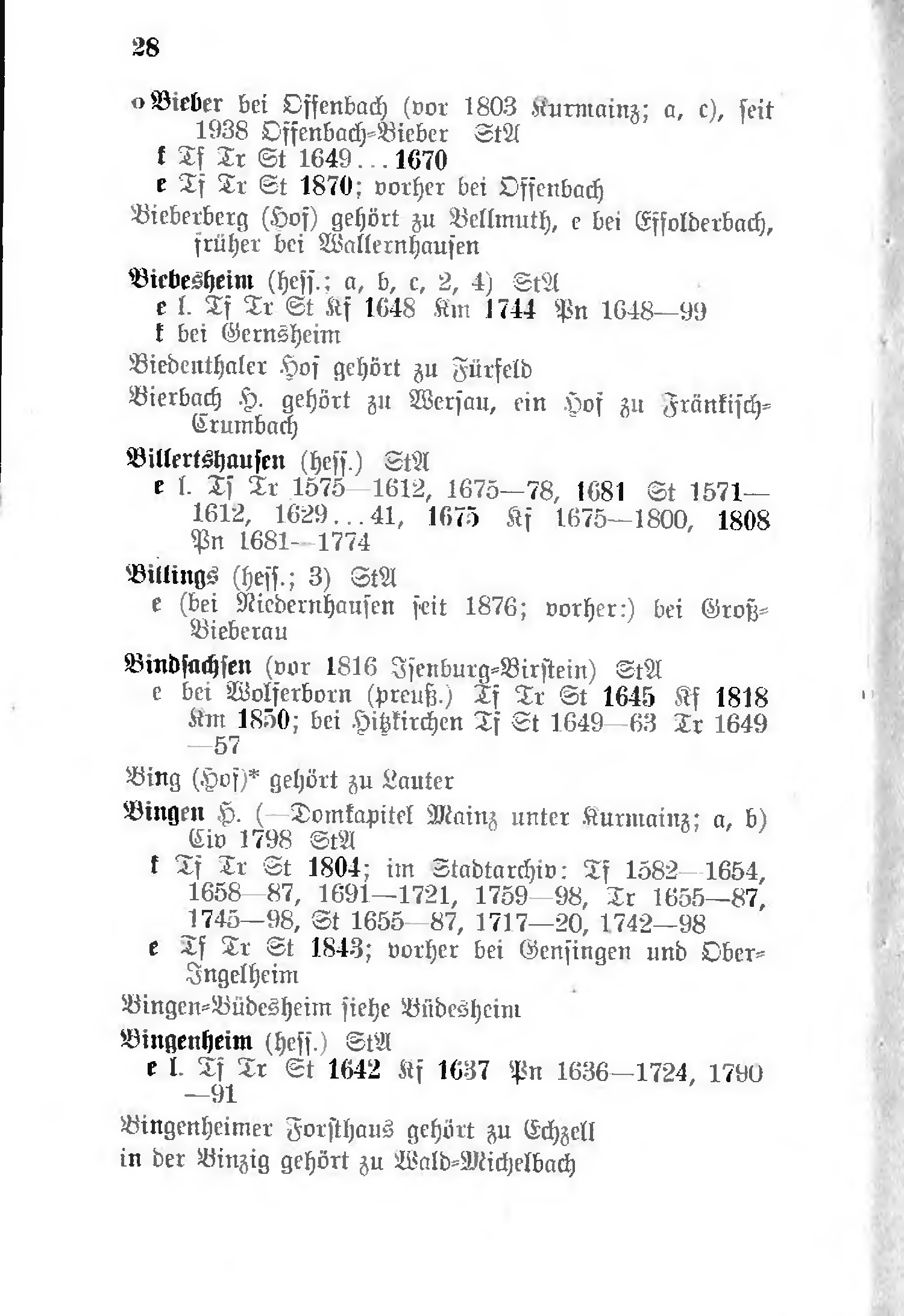 o Bieber bei Offenbach (vor 1803 Kurzmainz; a, c), seit 1938 Offenbach-Bieber StA