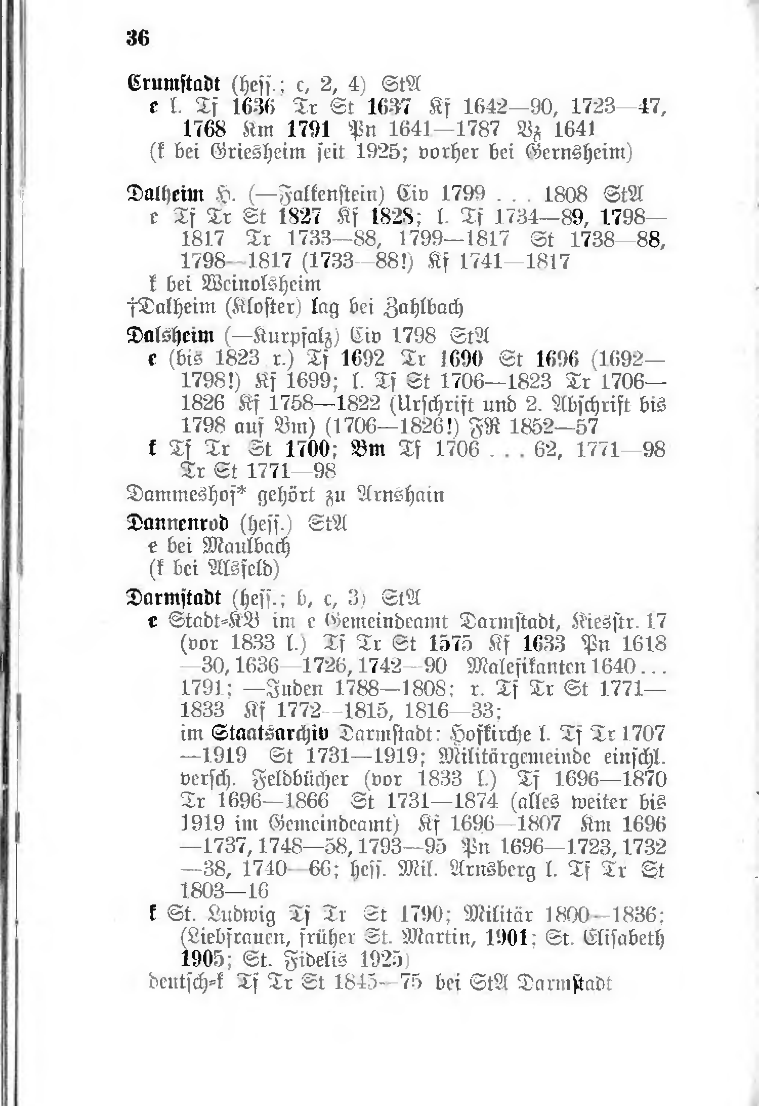 - e Stadt-KB im e Gemeindeamt Darmstadt, Kiesstr. 17 (vor 1833 l.) Tf Tr St 1575 Kf 1633 Pn 1618–30, 1636–1726, 1742–90 Malesikanten 1640...1791; —Juden 1788–1808; r. Tf Tr St 1771–1833 Kf 1772–1815, 1816–33;
