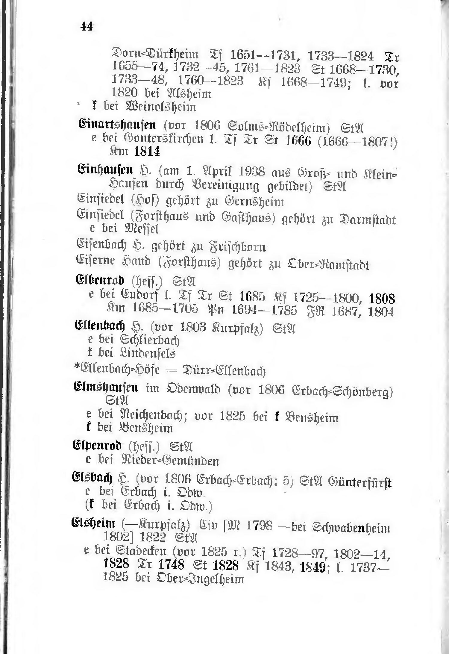 Einhausen H. (am 1. April 1938 aus Groß- und Klein-Hausen durch Vereinigung gebildet zu Gernsheim