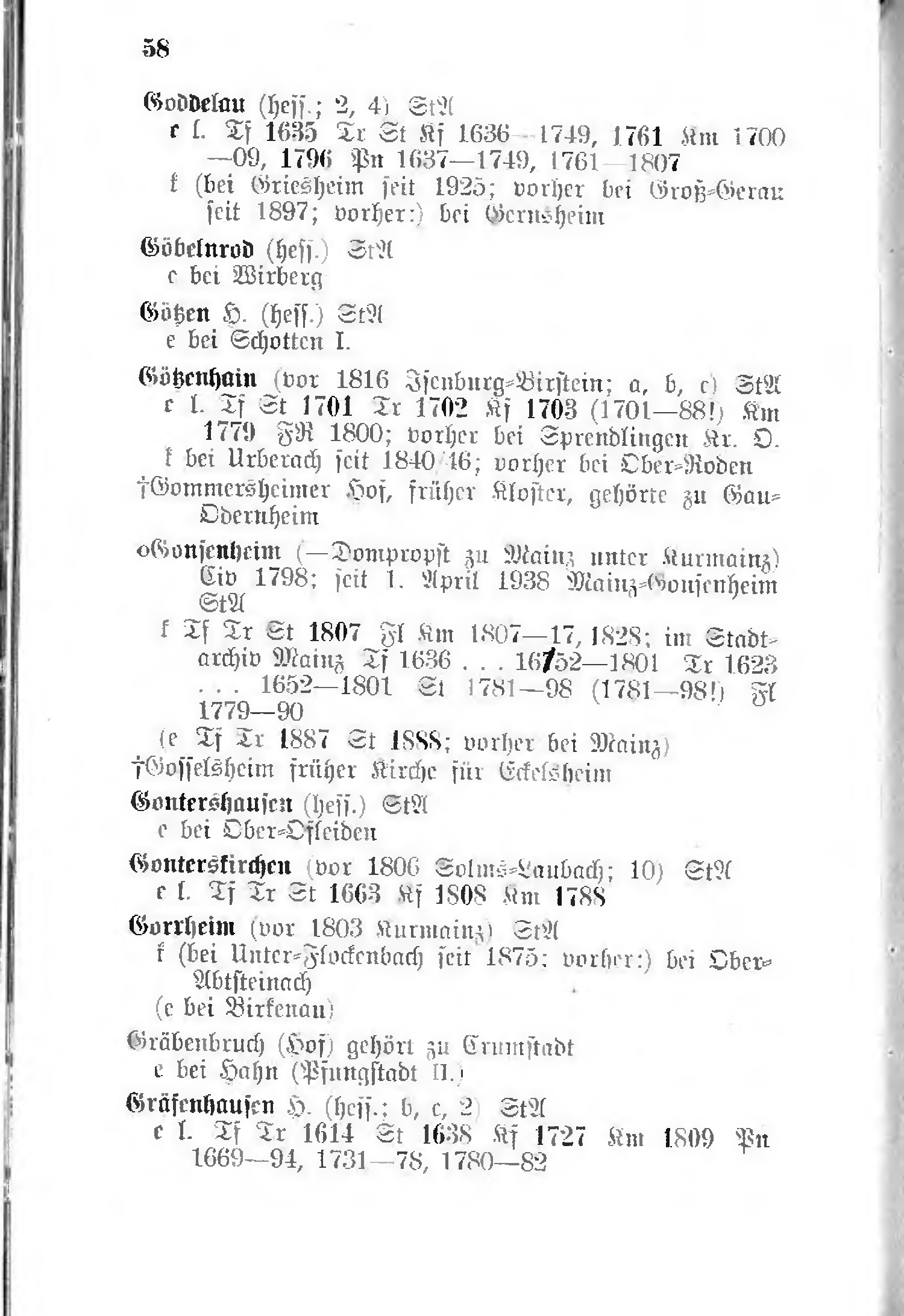 o Gonsenheim (—Dompropst zu Mainz unter Kurmainz) Civ 1798; seit 1. April 1938 Mainz-Gonsenheim StA