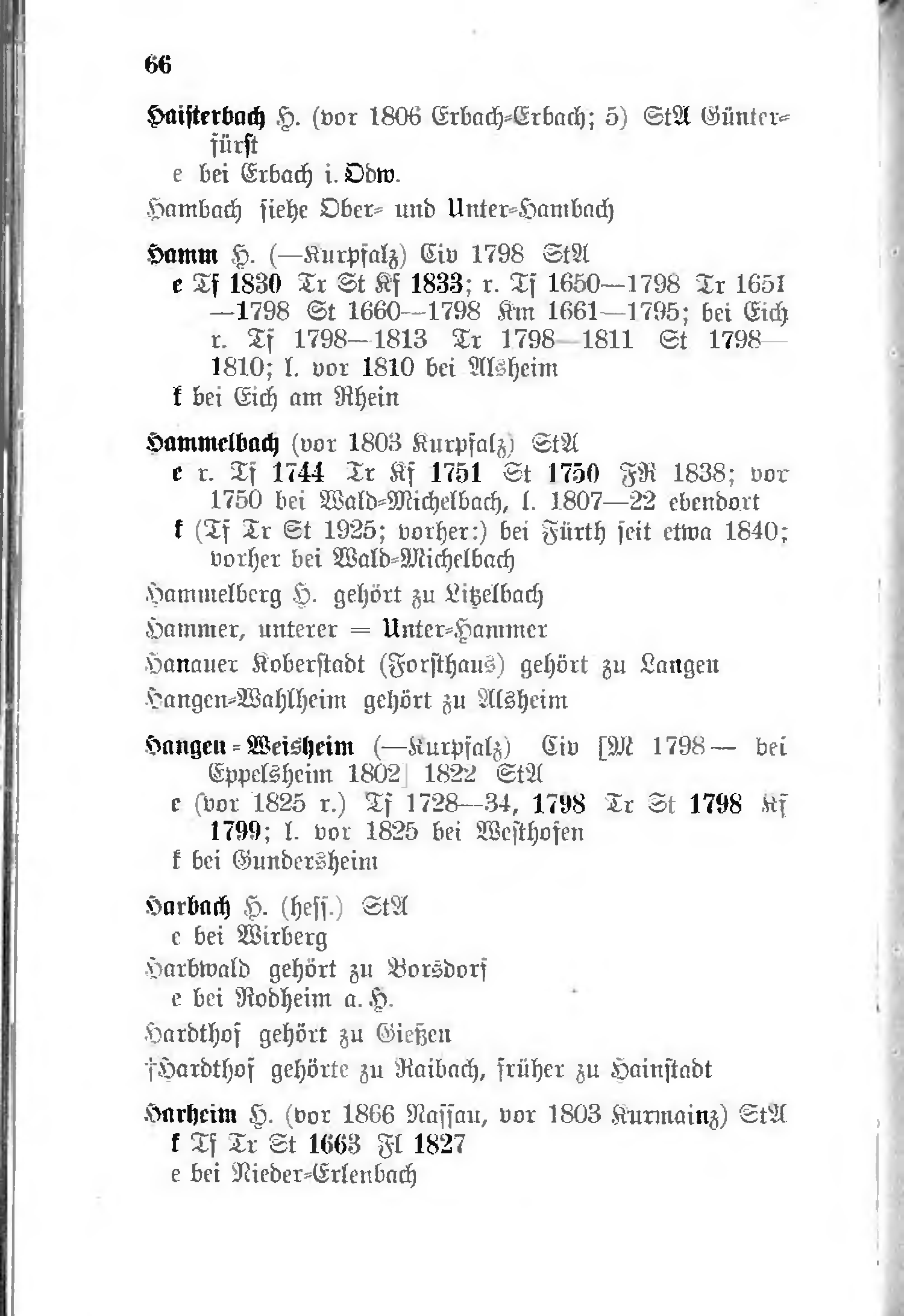 - e (vor 1825 r.) Tf 1728–34, 1798 Tr St 1798 Kf 1799; l. vor 1825 bei Westhofen