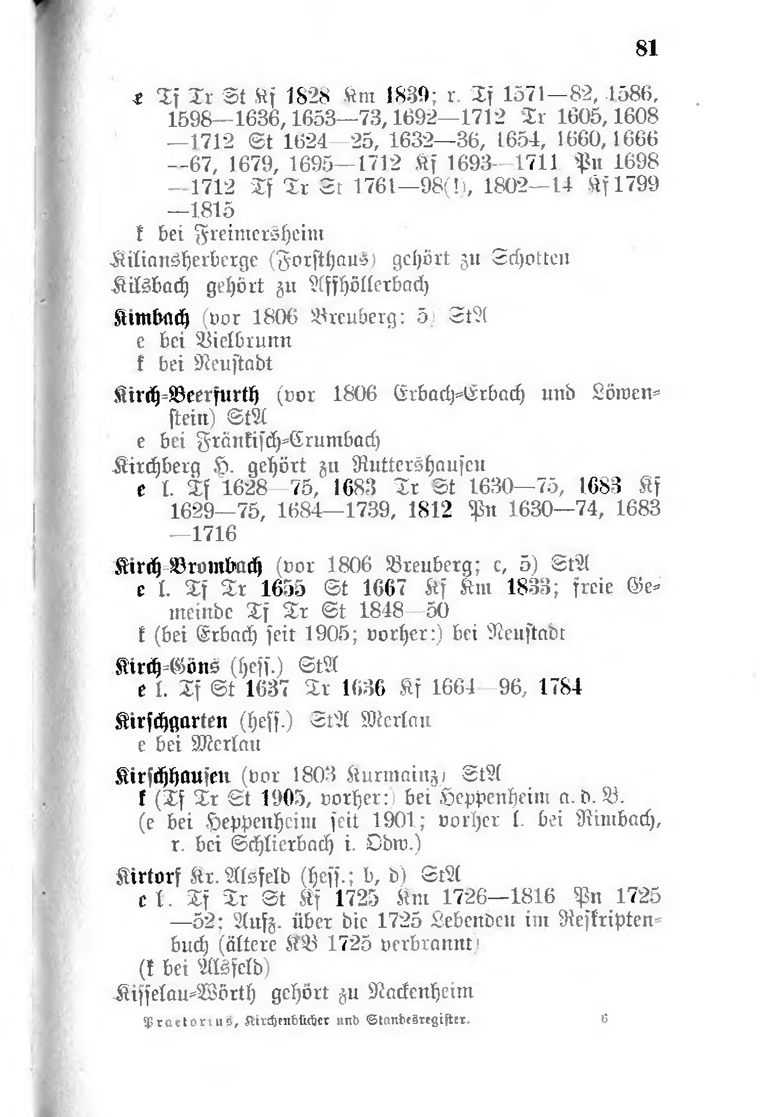 - e l. Tf Tr 1655 St 1667 Kf Km 1833; freie Gemeinde Tf Tr St 1848–50