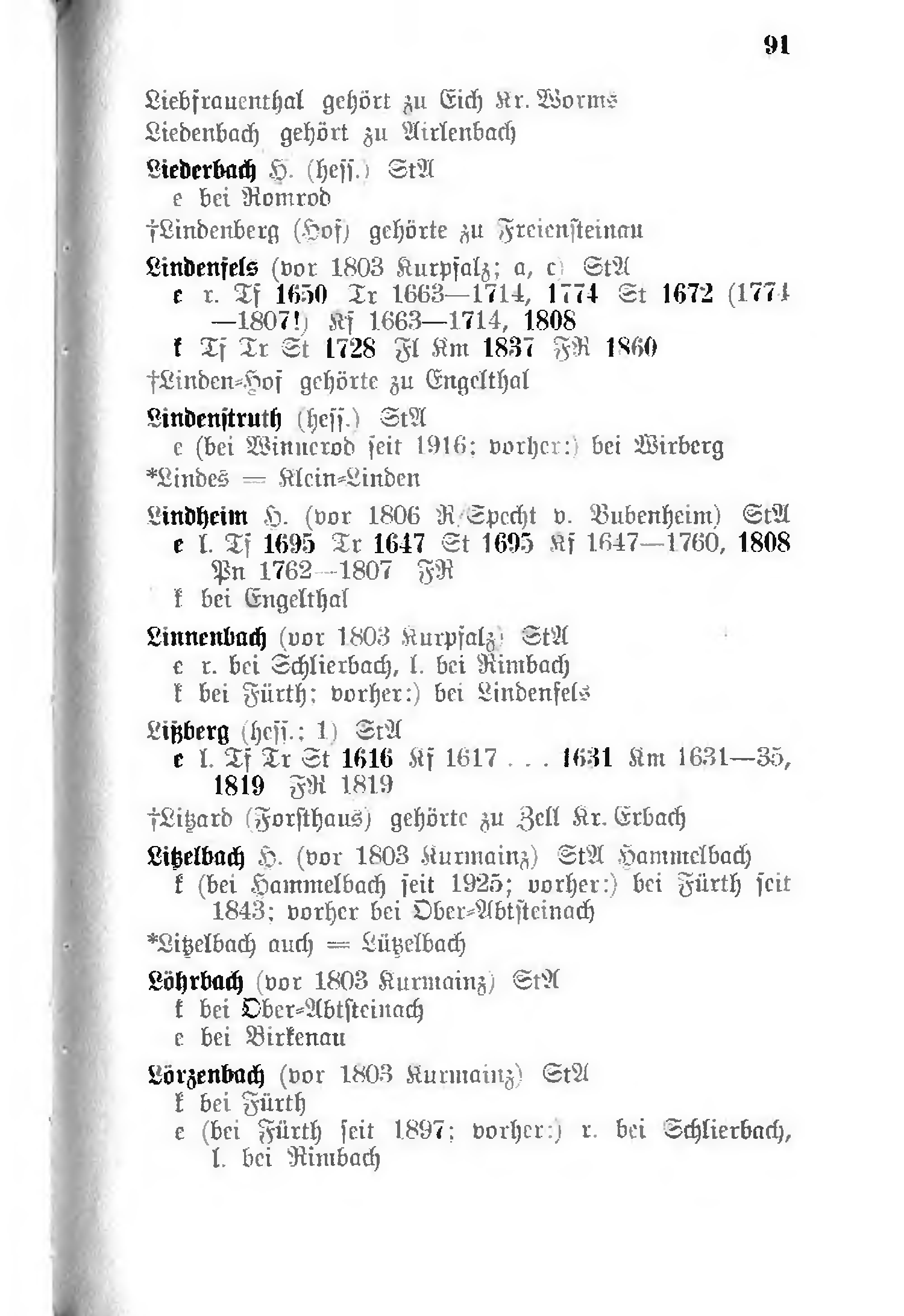 - k (bei Fürth; vorher:) bei Lindenfels
