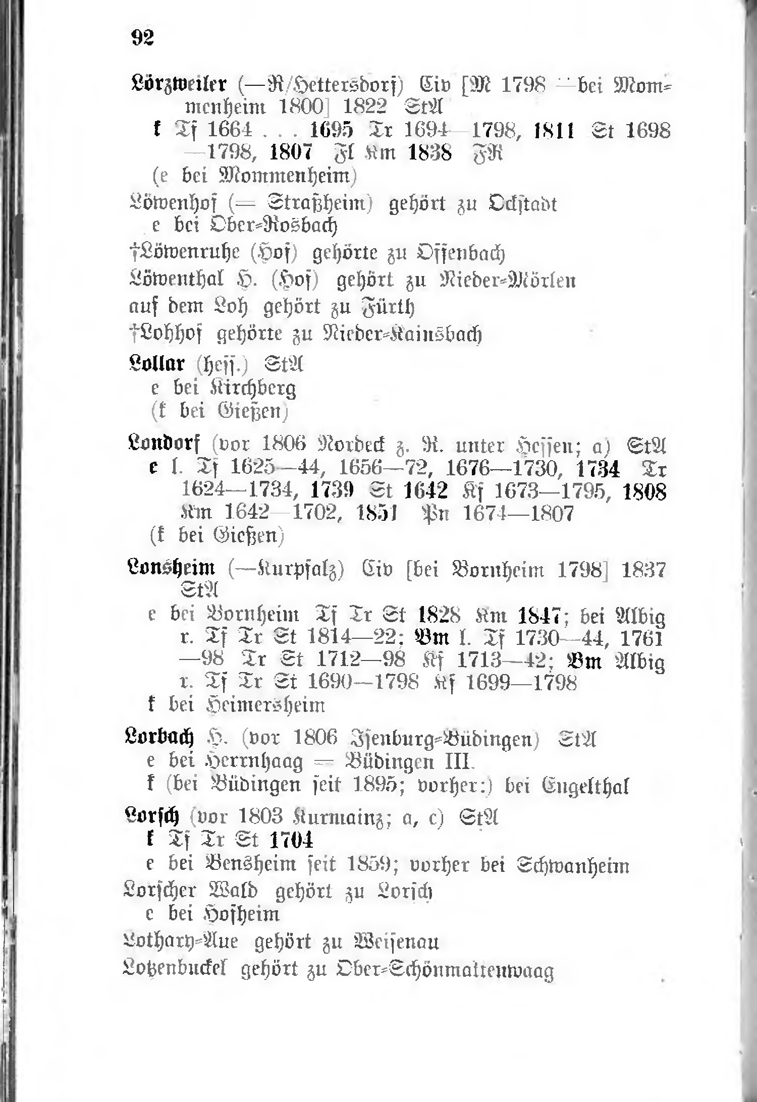 Lorsch (vor 1803 Kurmainz; a, c) StA