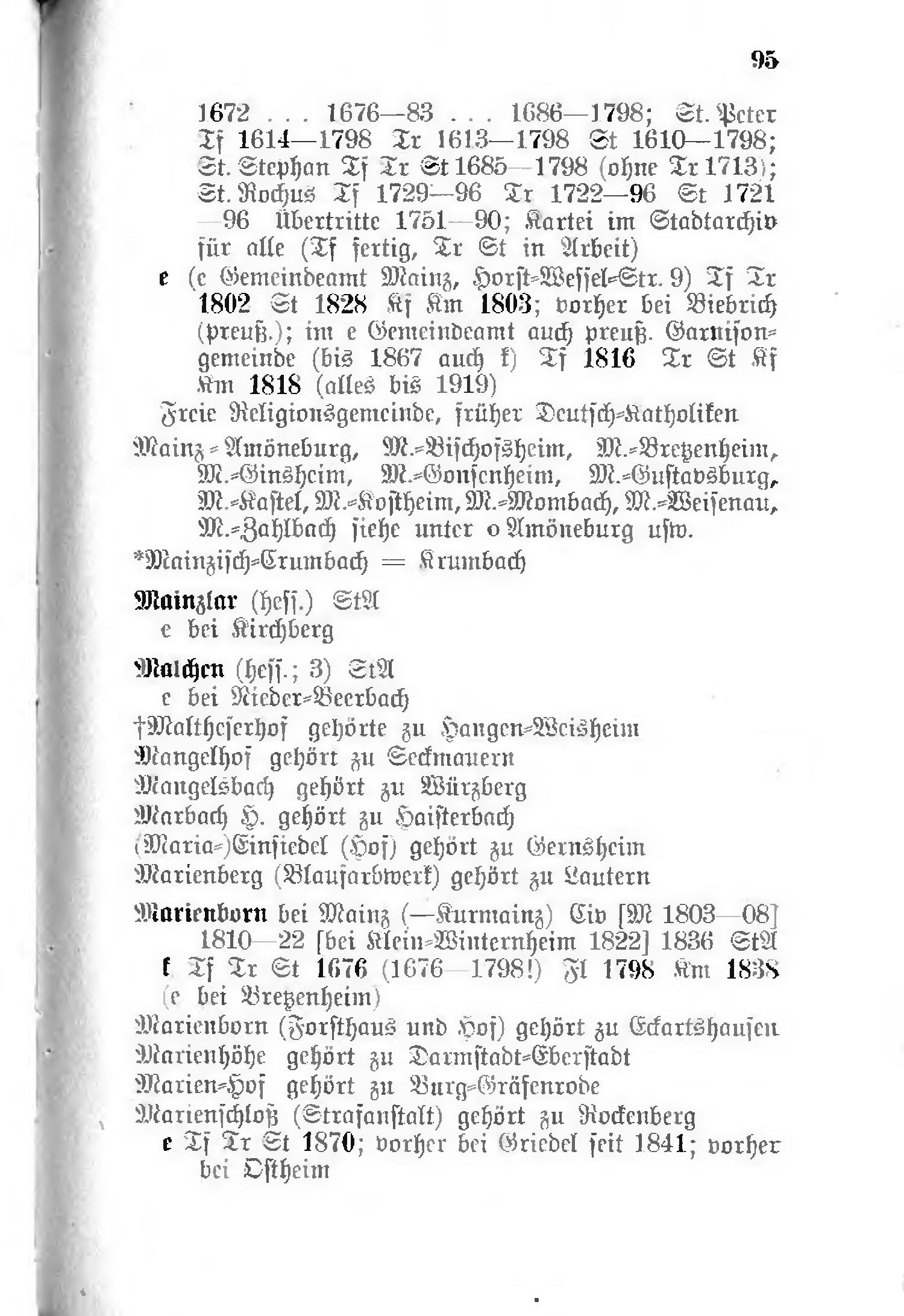 Mainz-Amöneburg, M.-Bischofsheim, M.-Bretzenheim, M.-Ginsheim, M.-Gonsenheim, M.-Gustavsburg, M.-Kastel, M.-Kostheim, M.-Mombach, M.-Weisenau, M.-Zahlbach siehe unter o Amöneburg usw.