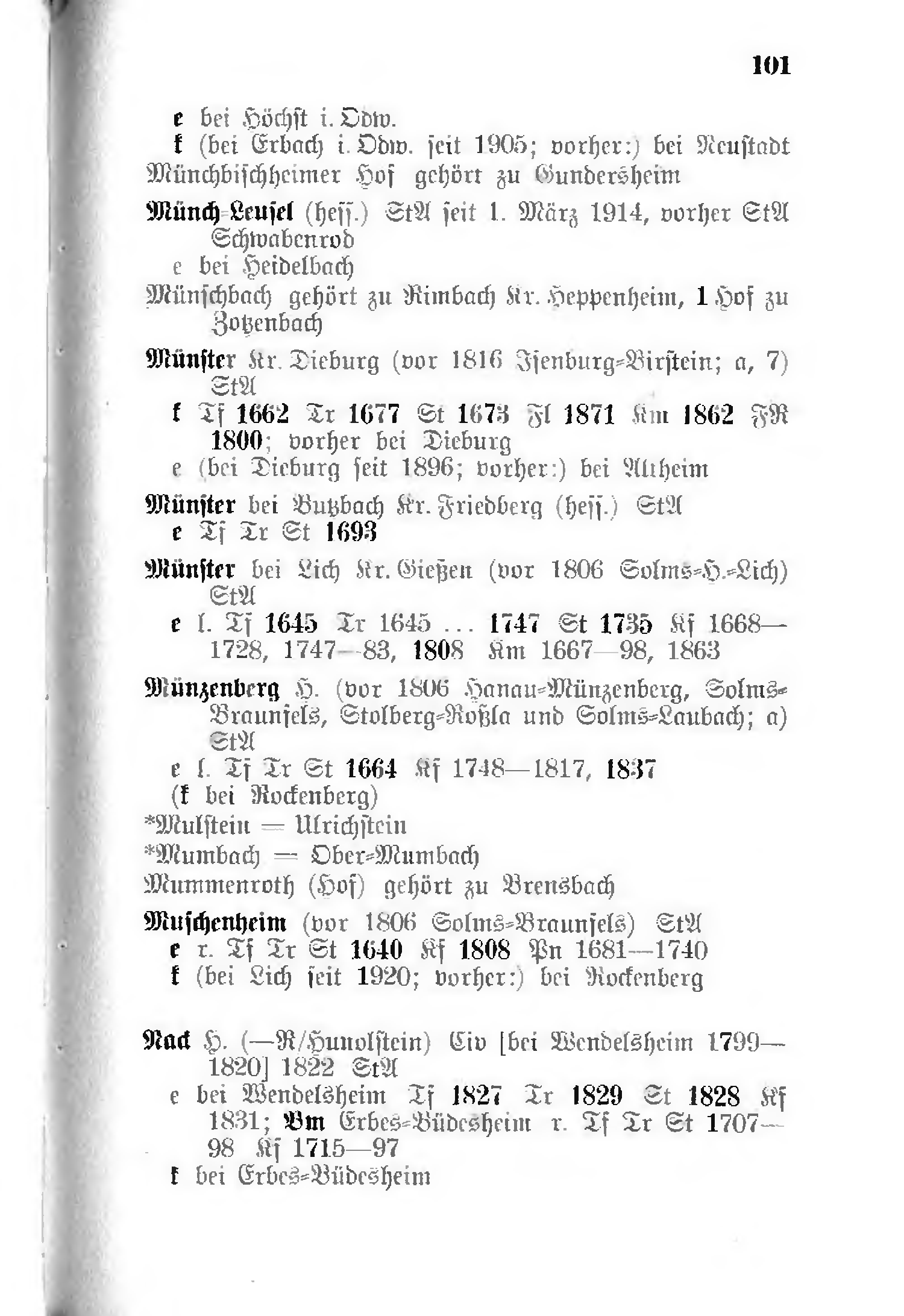 - k Tf 1662 Tr 1677 St 1673 Fl 1871 Km 1862 FR 1800; vorher bei Dieburg
