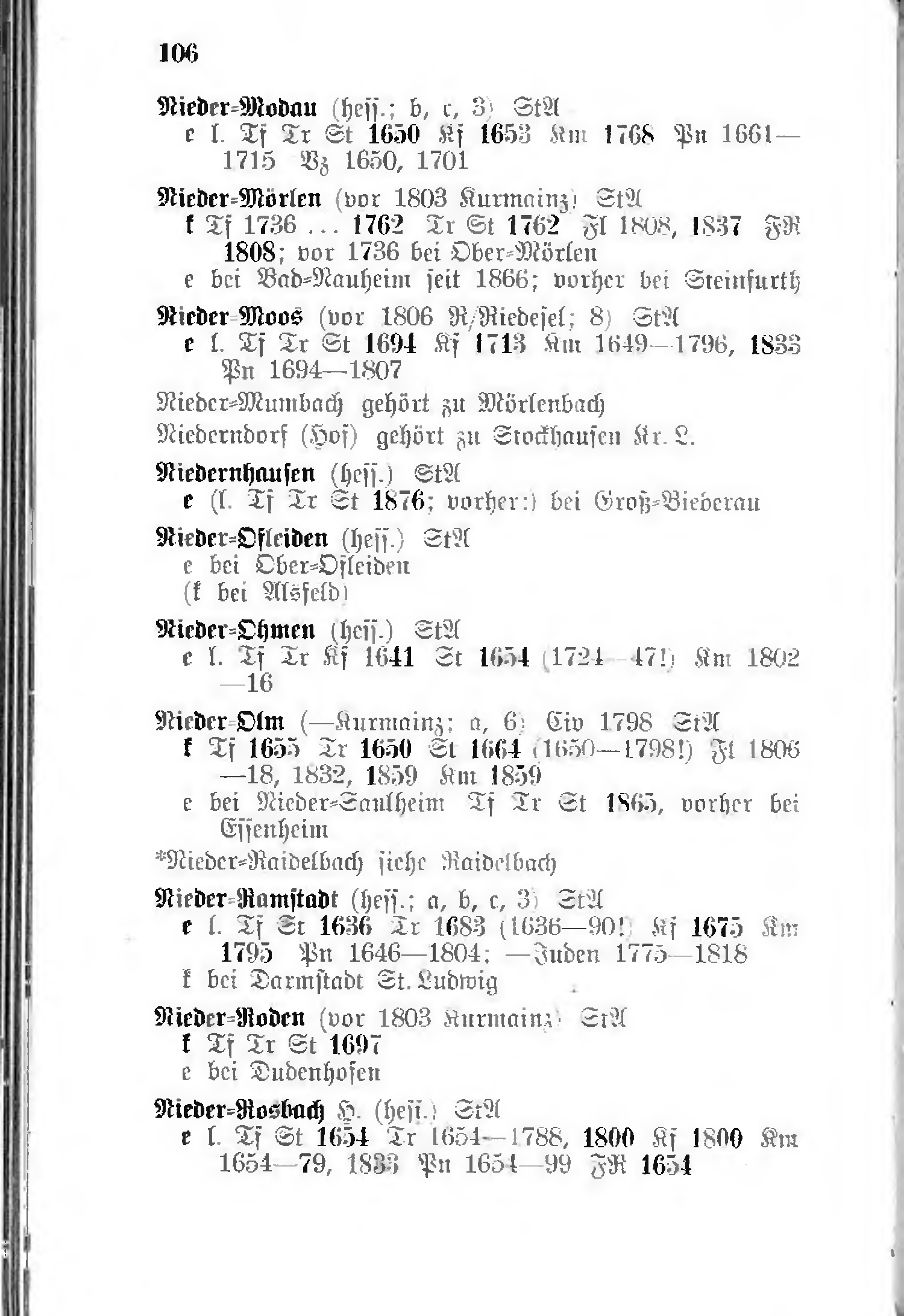 - k Tf 1736…1762 Tr St 1762 Fl 1808, 1837 FR 1808, vor 1736 bei Ober-Mörlen