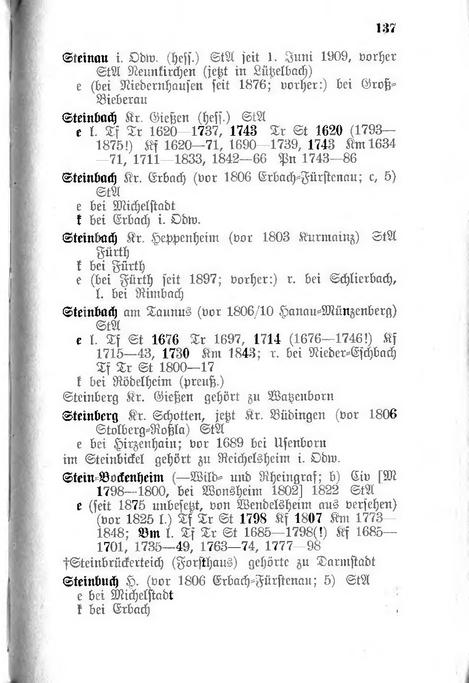 Steinau i. Odw. (hess.) StA seit 1. April 1909, vorher StA Neunkirchen (jetzt in Lützelbach)