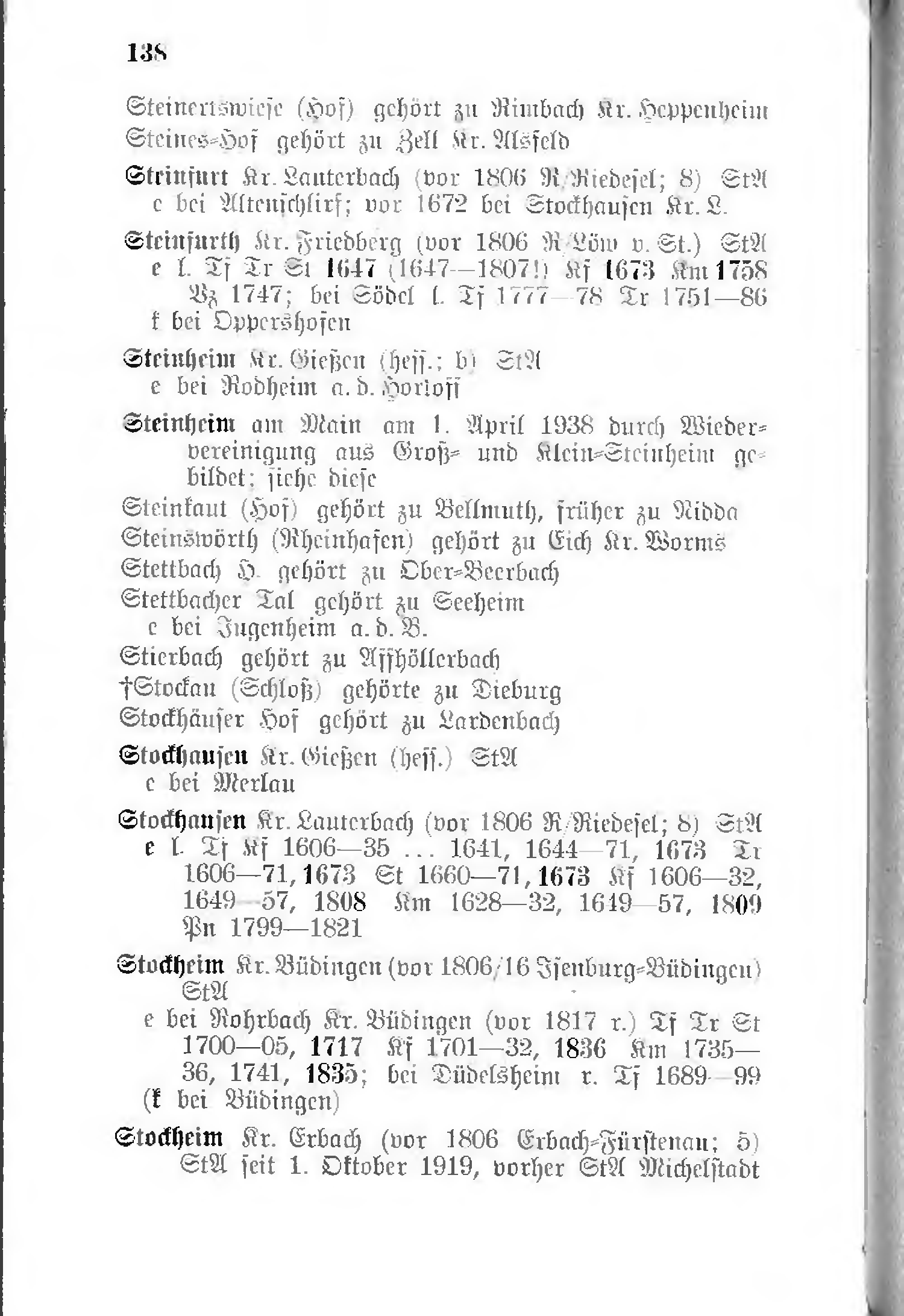 Stockheim Kr. Erbach (vor 1806 Erbach-Fürstenau; 5) StA seit 1. Oktober 1919, vorher StA Michelstadt