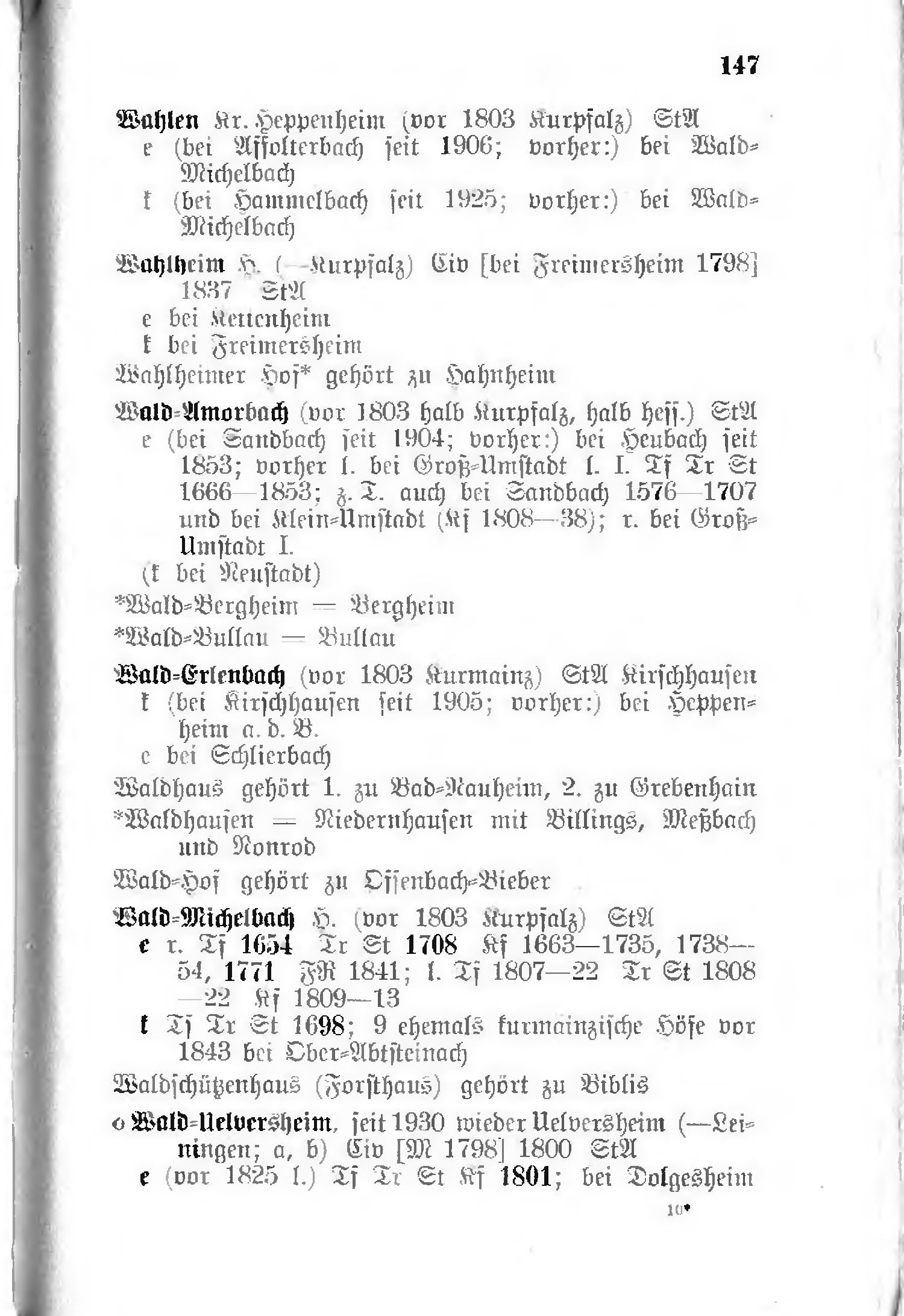 - k (bei Hammelbach seit 1925; vorher:) bei Wald-Michelbach
