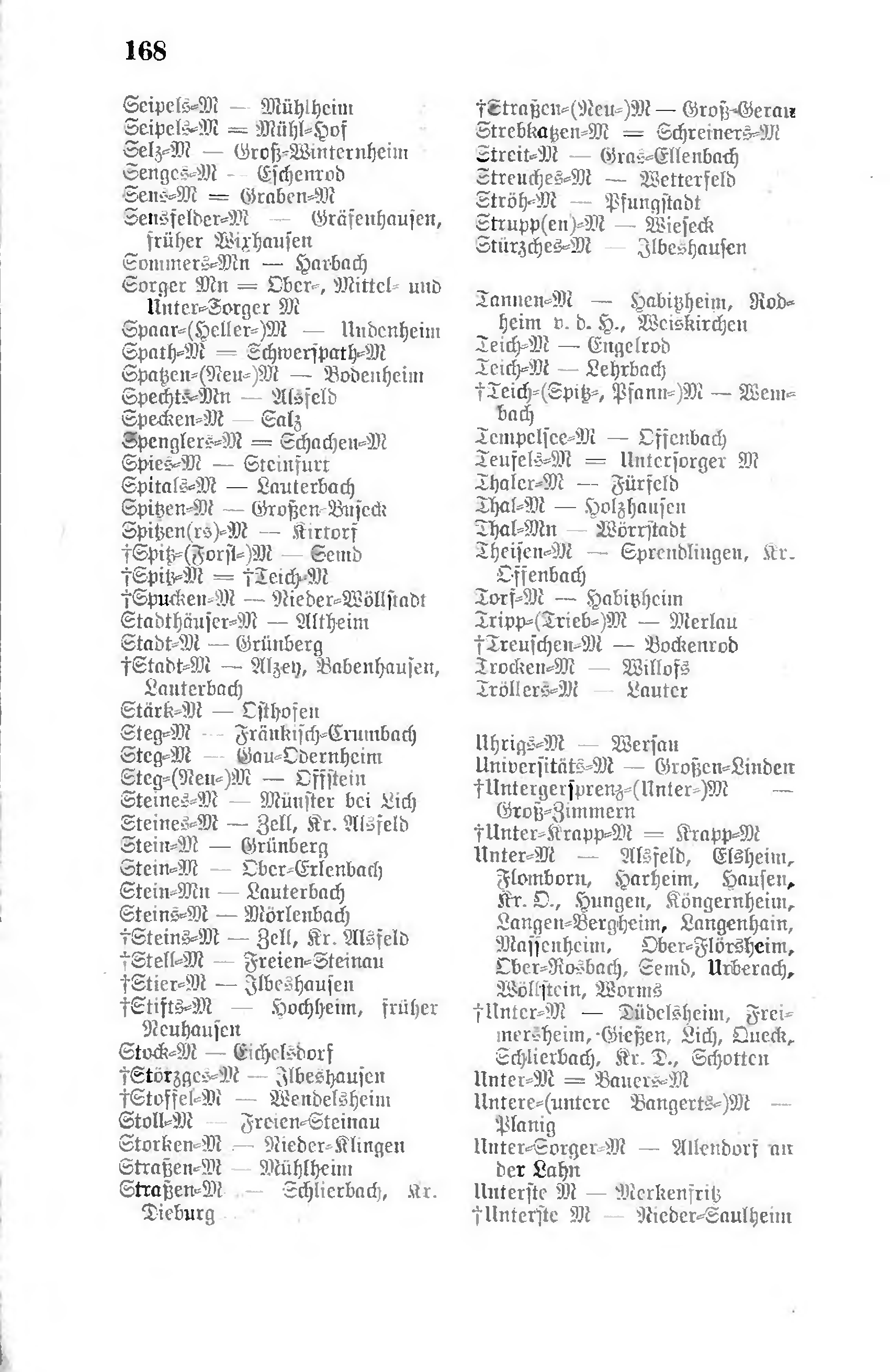 - Unter-M – Alsfeld, Elsheim, Flomborn, Harheim, Hausen, Kr. O.[1], Hungen, Köngernheim, Langen-Bergheim, Langenhain, Massenheim, Ober-Flörsheim, Ober-Rosbach, Semd, Urberach, Wöllstein, Worms