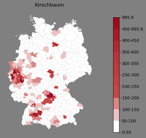 Absolute Verteilung des Namens Kirschbaum (1890)Direkt zur Karte Absolute Verteilung des Namens "Kirschbaum" um 1890 im damaligen Deutschen Reich Sie können die Karte innerhalb des Fensters zoomen und verschieben. |